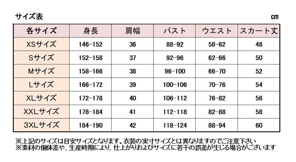 サイズ:こちらの衣装は男女共用サイズになります。女性サイズご希望の際は1、2サイズ落としてご注文されることをお勧めいたします。