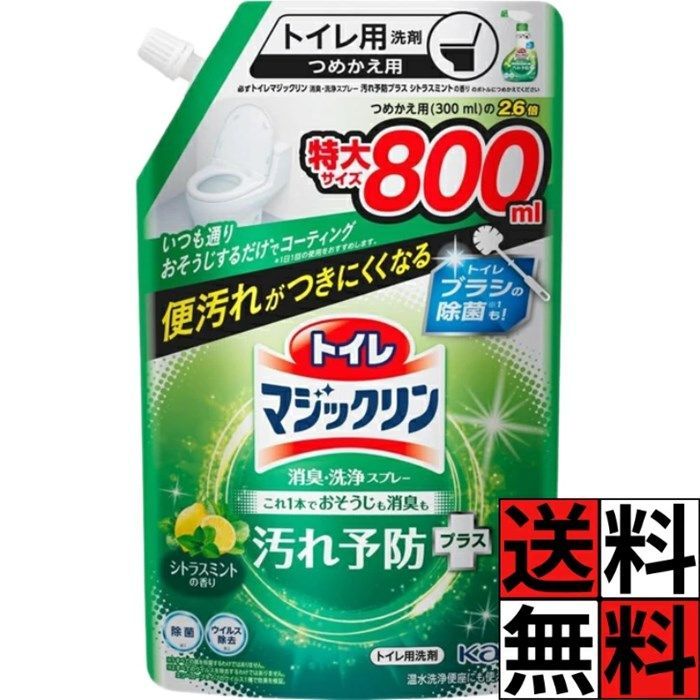 マジックリン トイレ 洗剤 詰め替え 消臭 洗浄 スプレー 汚れ 予防 プラス 掃除 コーティング 除菌 ニオイ 便器 フタ 床 ツヤツヤ きれい シトラスミント 香り 花王 800ml