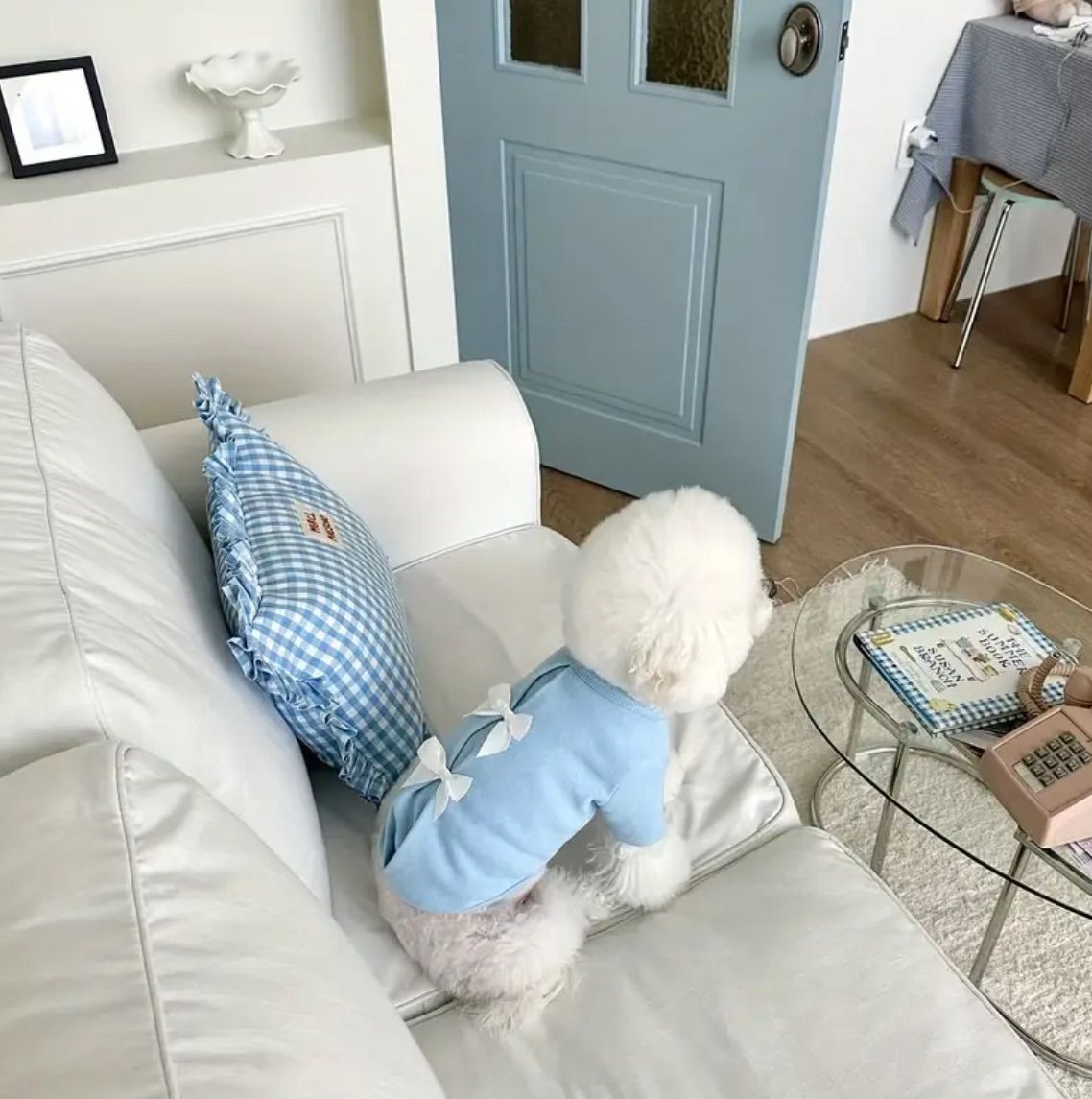 71ドッグウェア 犬服 ブルー あったか薄手フリース素材 犬の服 ペット服 秋冬服 小型犬用服 お洒落 お出かけウェア 裏起毛 リボン付き 可愛い 新作ファッション 暖かいペット用スウェットシャツ テディ・ビションフリーゼ・ポメラニアン対応 プラッシュ裏地付き