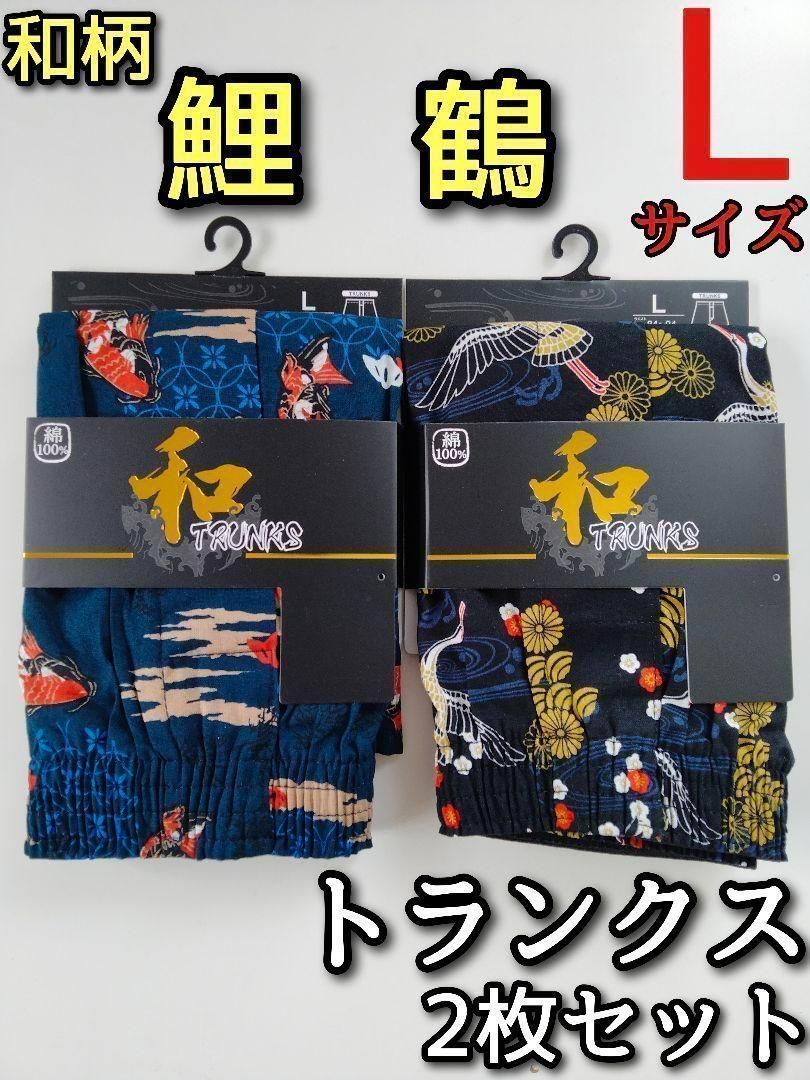 メンズ 男 男の子 トランクス パンツ 下着 インナー Lサイズ 綿 コットン 和 和風 和柄 2枚 2枚セット 二枚 二枚セット 鯉 鶴 プレゼント ギフト
