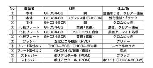 材料:鋼/黄銅(真鍮)/塩化ビニル樹脂(PVC)/ポリアセタール(POM)