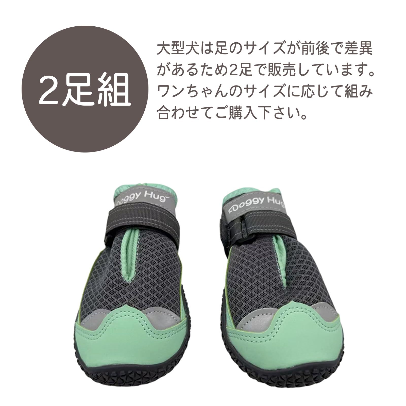 大型犬用 犬靴 メッシュスニーカー 2足販売 ミントグリーン 7 軽量 通気性 やわらかゴム底 Doggy Hug ドギーハグ