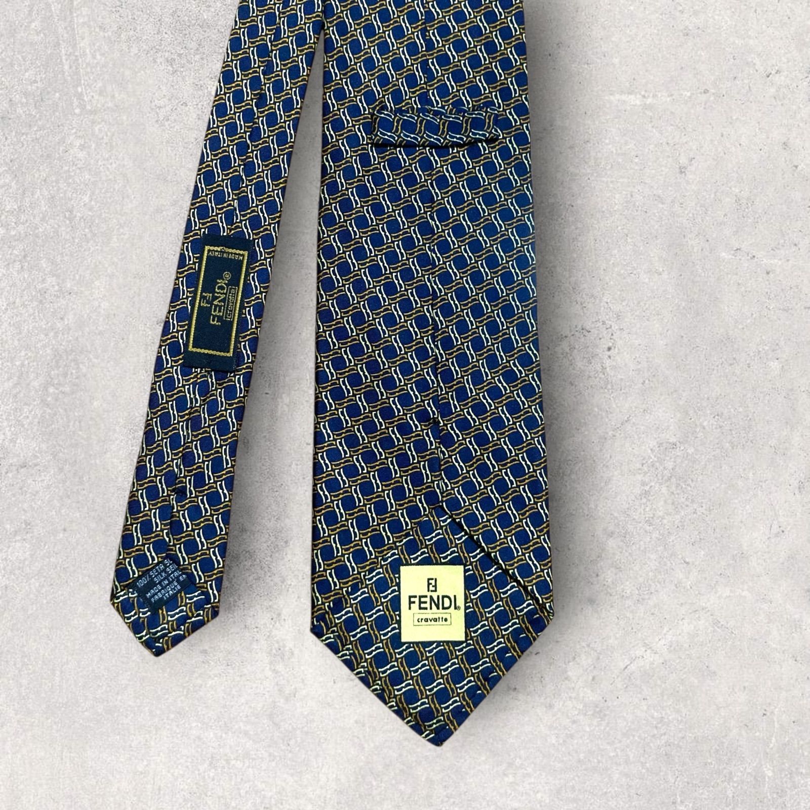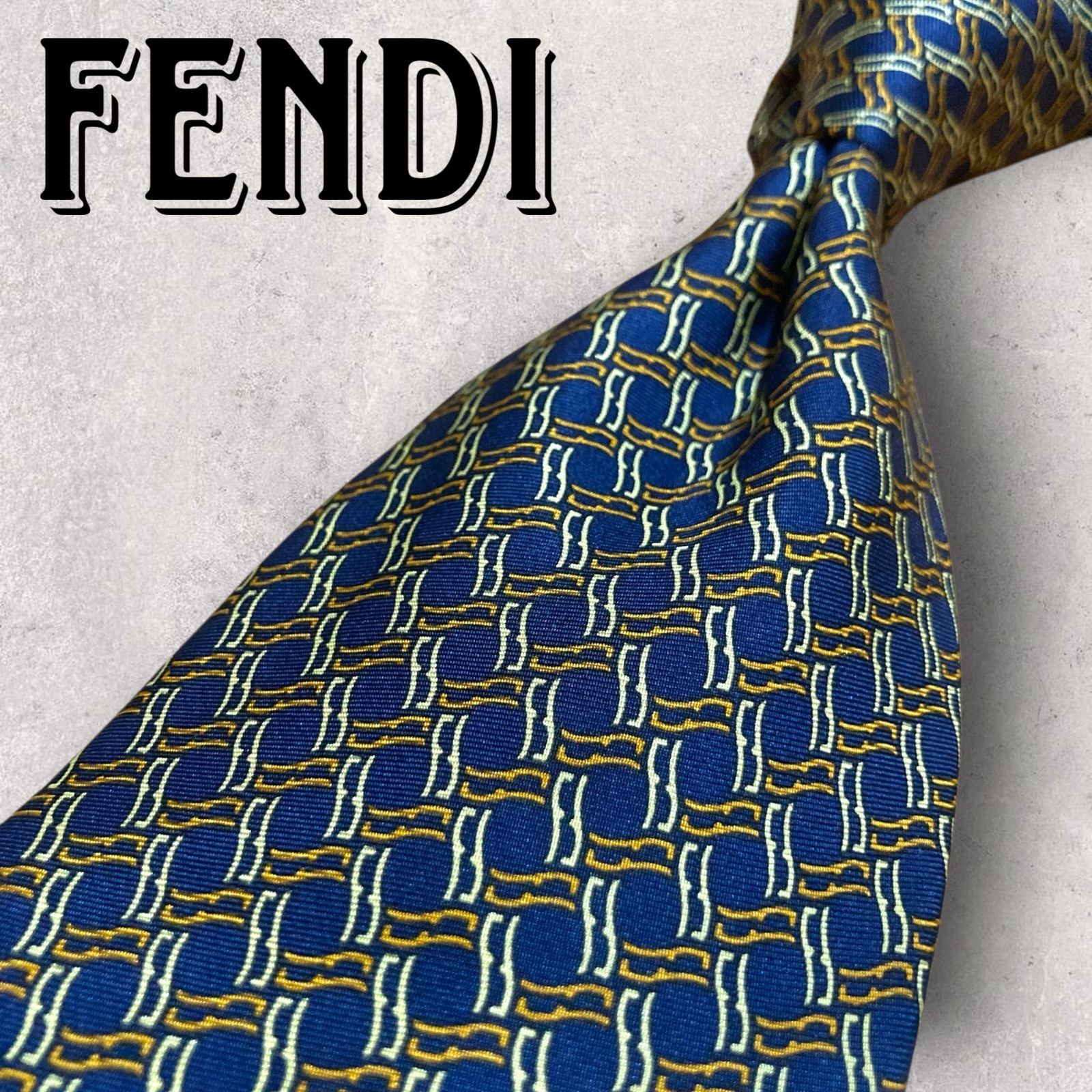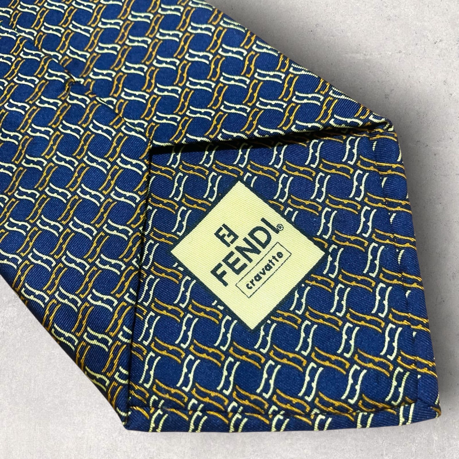 FENDI フェンディ パネル柄 格子柄 ネクタイ ネイビー