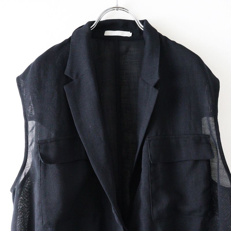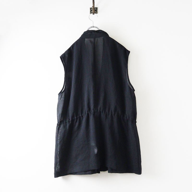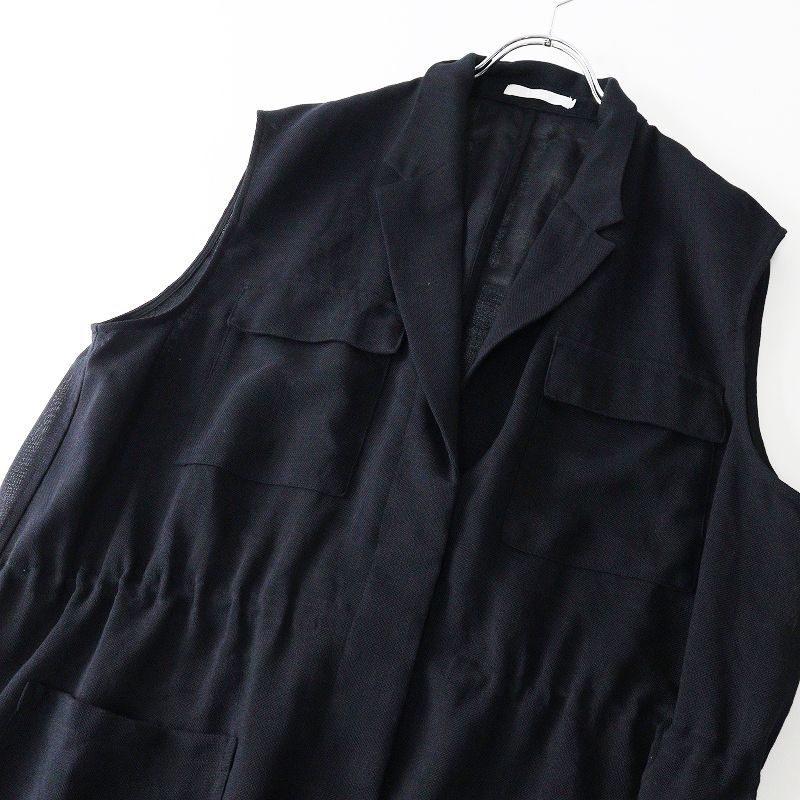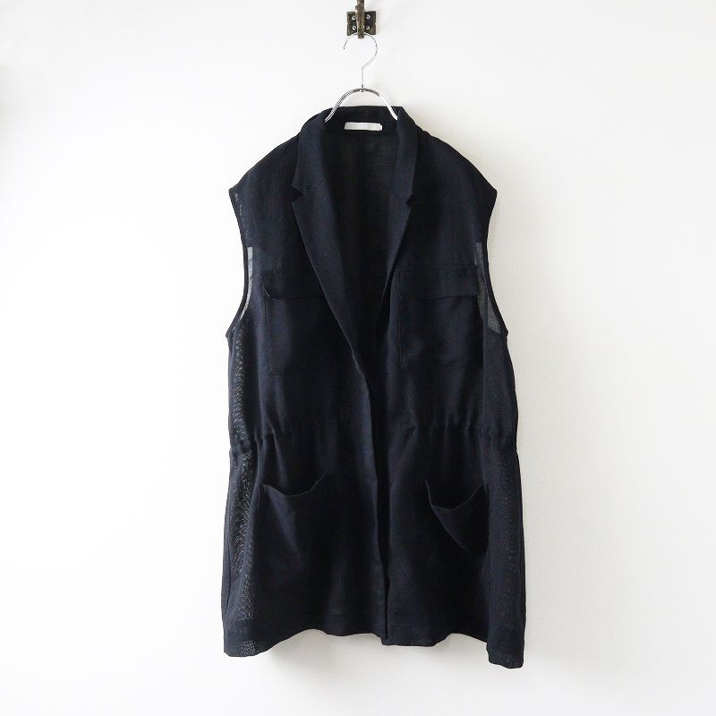 【品名】美品 大きいサイズ iCB アイシービー オンワード樫山 シアーミリタリーベスト 48\ブラック アウター ジレ 羽織り