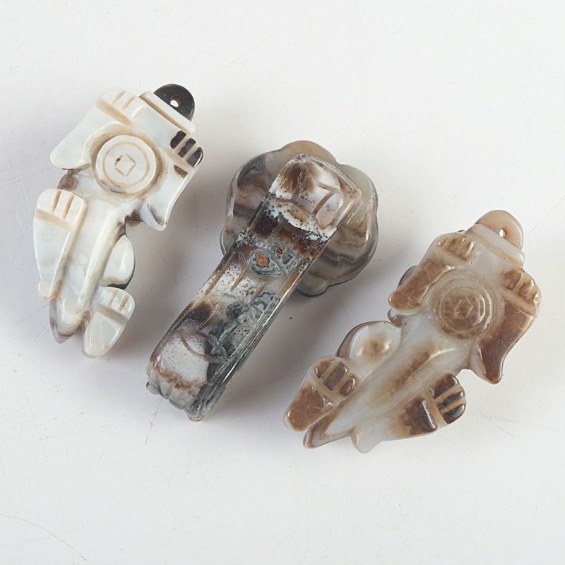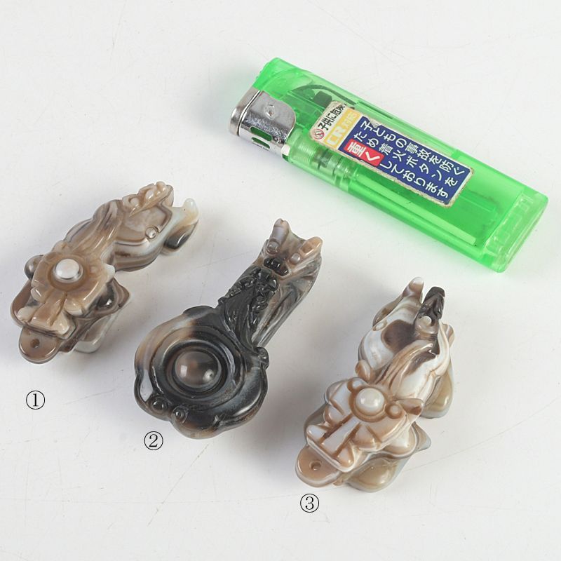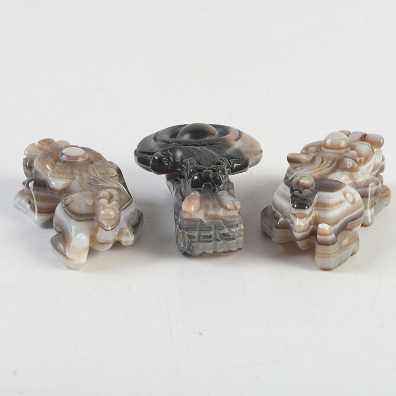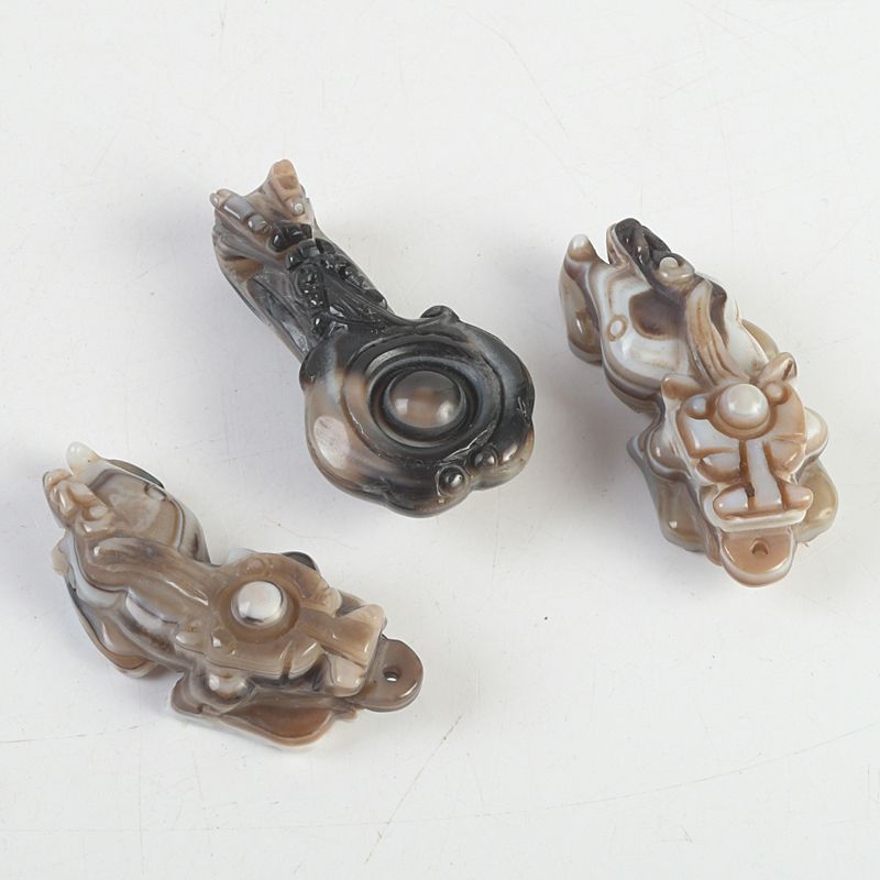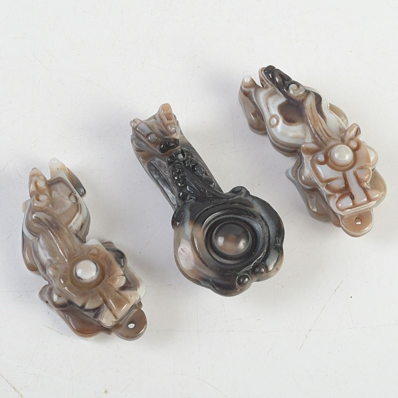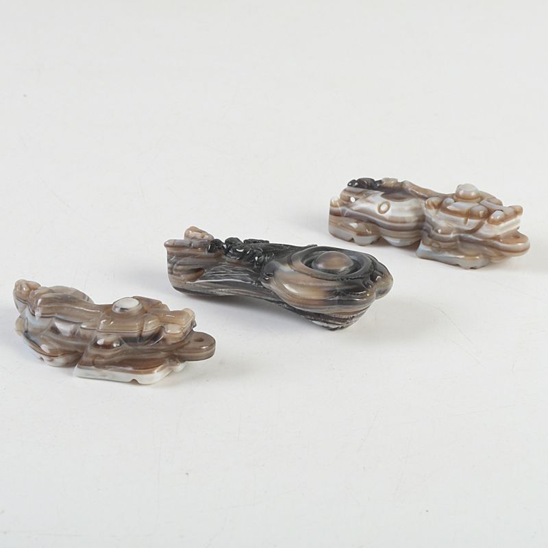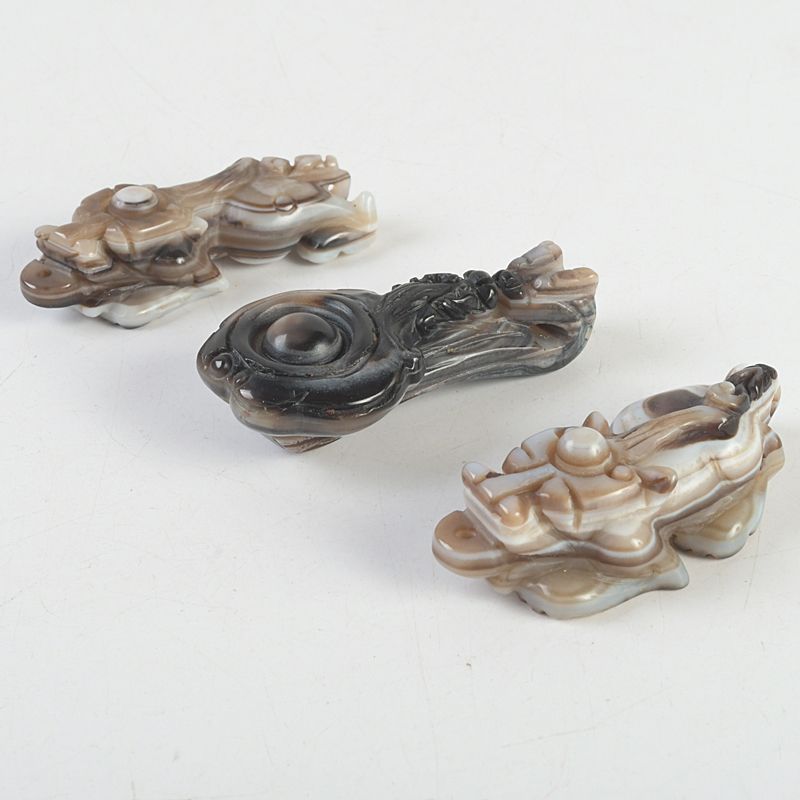 中国 玉石黒瑪瑙彫刻 神獣 獅子 如意 根付 置物 3点まとめて N S172