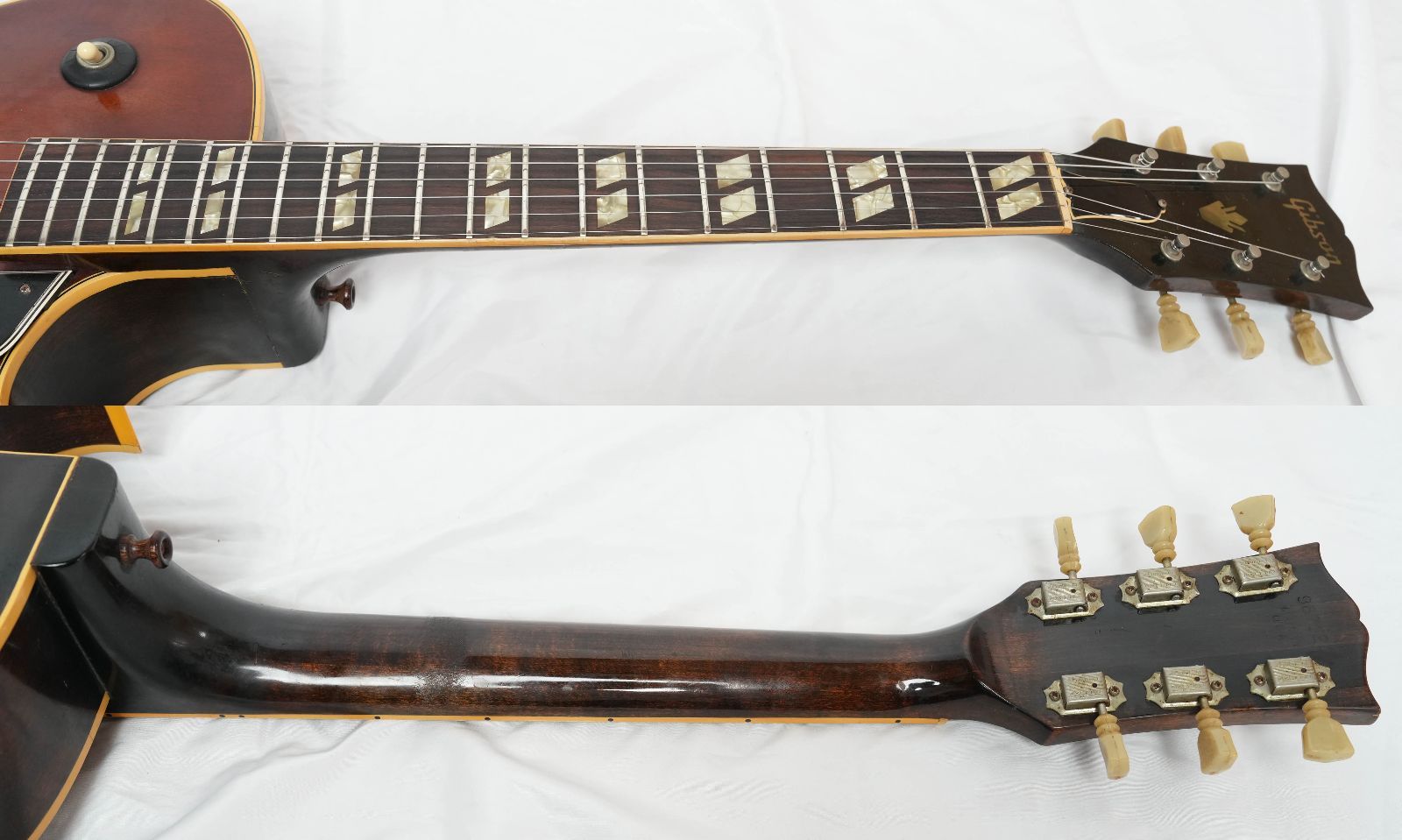 エンドピン、ジャック、フロントピックアップ、フレットはノンオリジナルです。