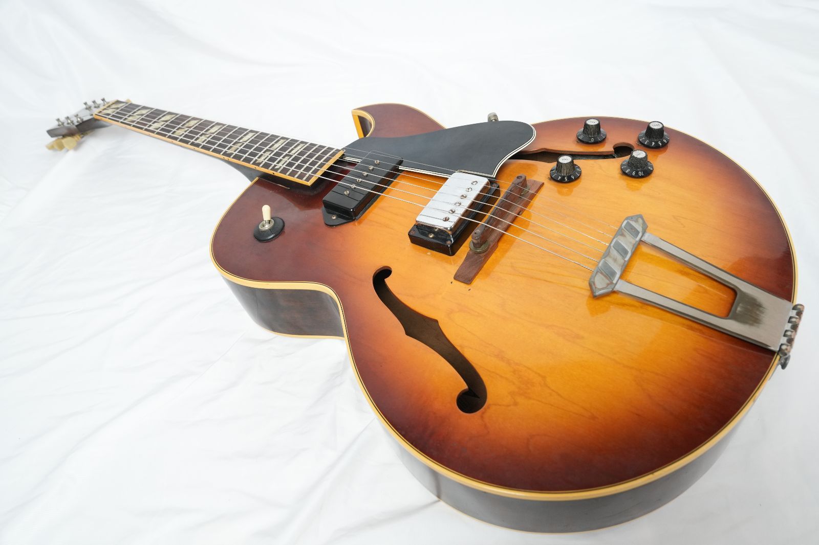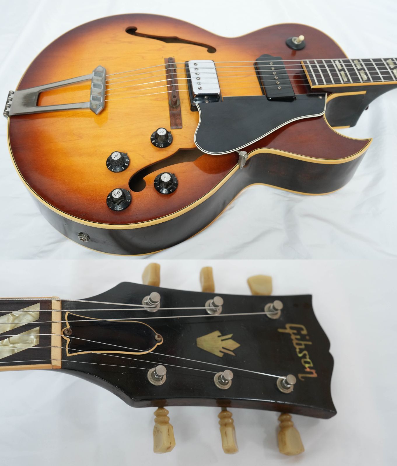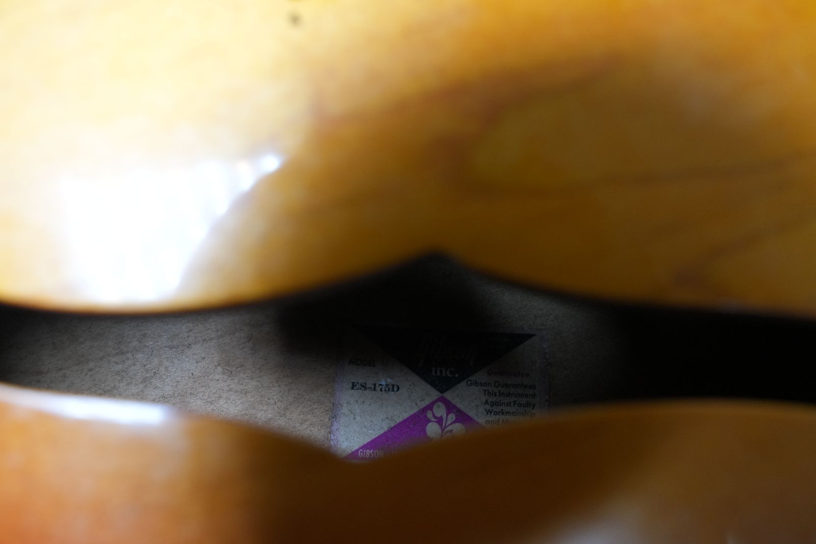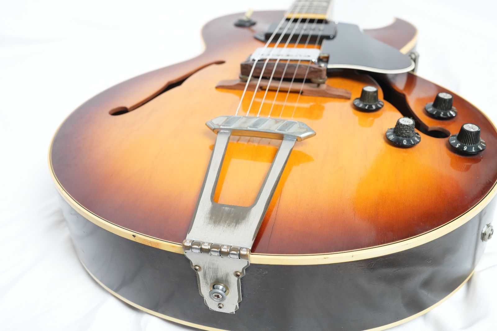 6桁シリアルナンバーの1970-1972年製と思われるヴィンテージフルアコモデル Gibson USA ES-175D Sunburstです。