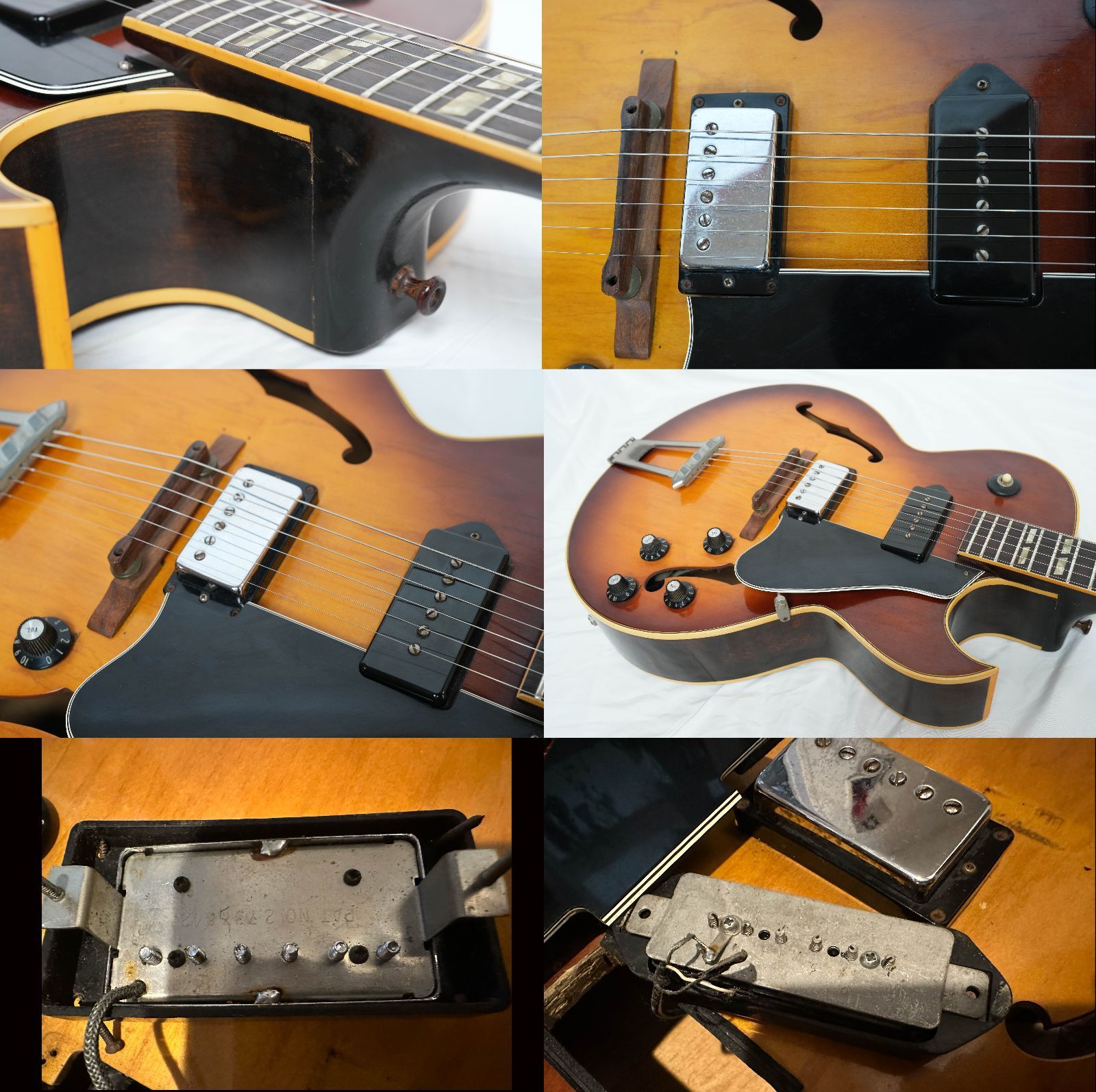 写真の通り、フロントピックアップがP-90に交換されています。前オーナーによると70年代のGibson P-90と言うことですが詳細は不明です。