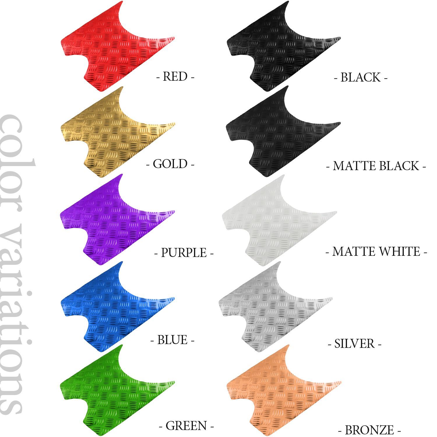 ■ブラック/ブルー/ゴールド/レッド/シルバー/グリーン/パープル/ブロンズ/マットホワイト/マットブラックの10色がございます。