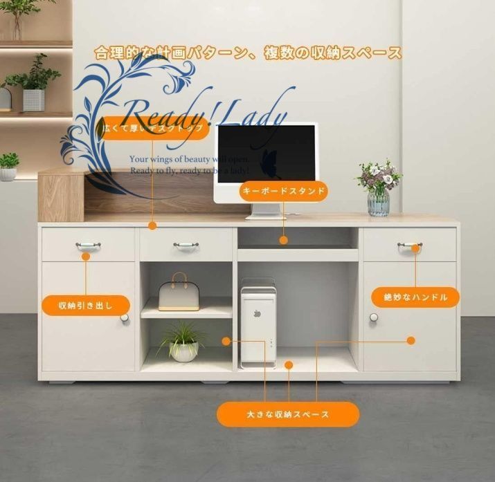 2.広いデスクトップと大容量:広いデスクトップと大容量の収納スペースには、レジ、招き猫、パソコンなどを置くことができます。