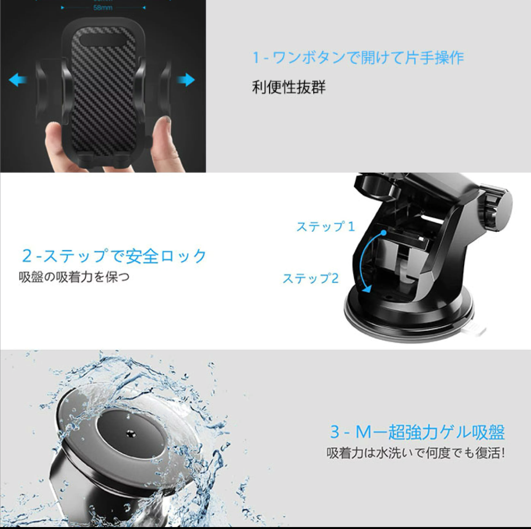 ★改良されたゲル吸盤は二重ロッキング設計により、真空を作って隙間なく粘着し安定性と利便性をさらにアップさせました。