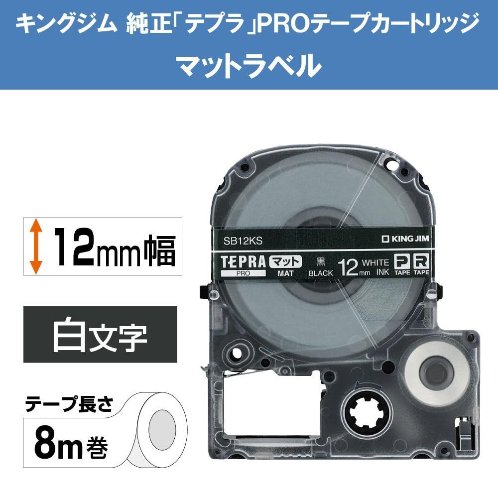 キングジム 【純正】 テプラPROテープカートリッジ マットラベル 12mm 黒/白文字 8m SB12KS