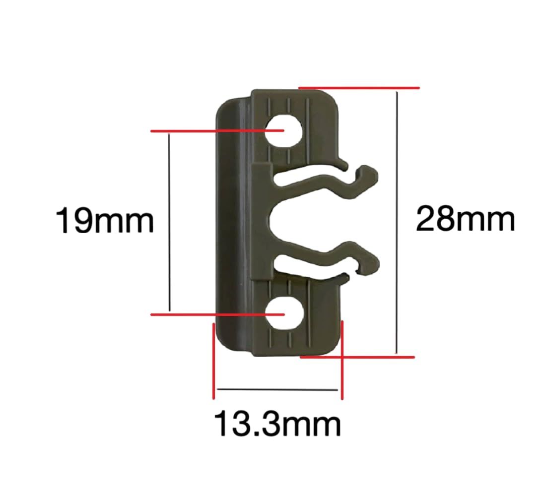 商品仕様 ネジ間中心の距離:19mm 幅:13mm 高さ:28mm 厚み:10.5mm