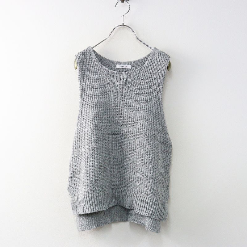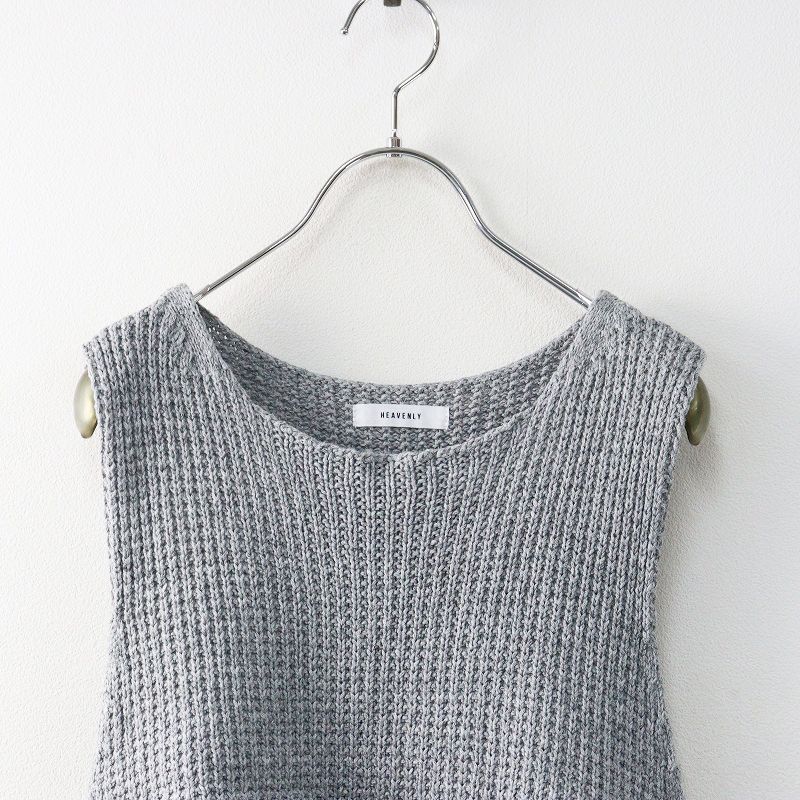 【品名】ヘブンリー HEAVENLY コットンリネンニットベスト |グレー トップス ノースリーブ レイヤード スリット