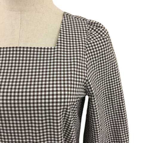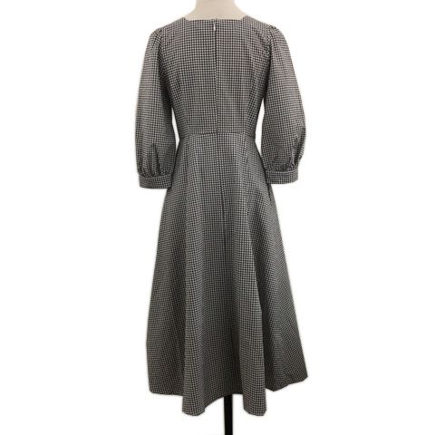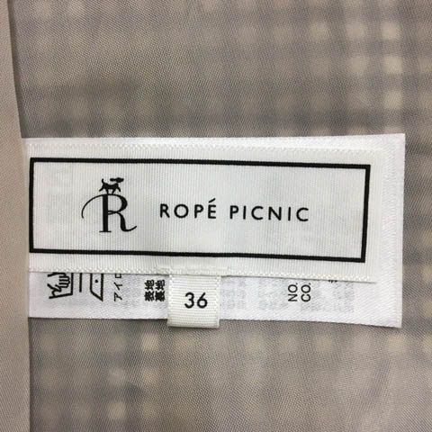 【商品名】ロペピクニック ROPE Picnic ワンピース フレア ロング タック サッカー チェック 七分袖 36 茶 白 ブラウン ホワイト
