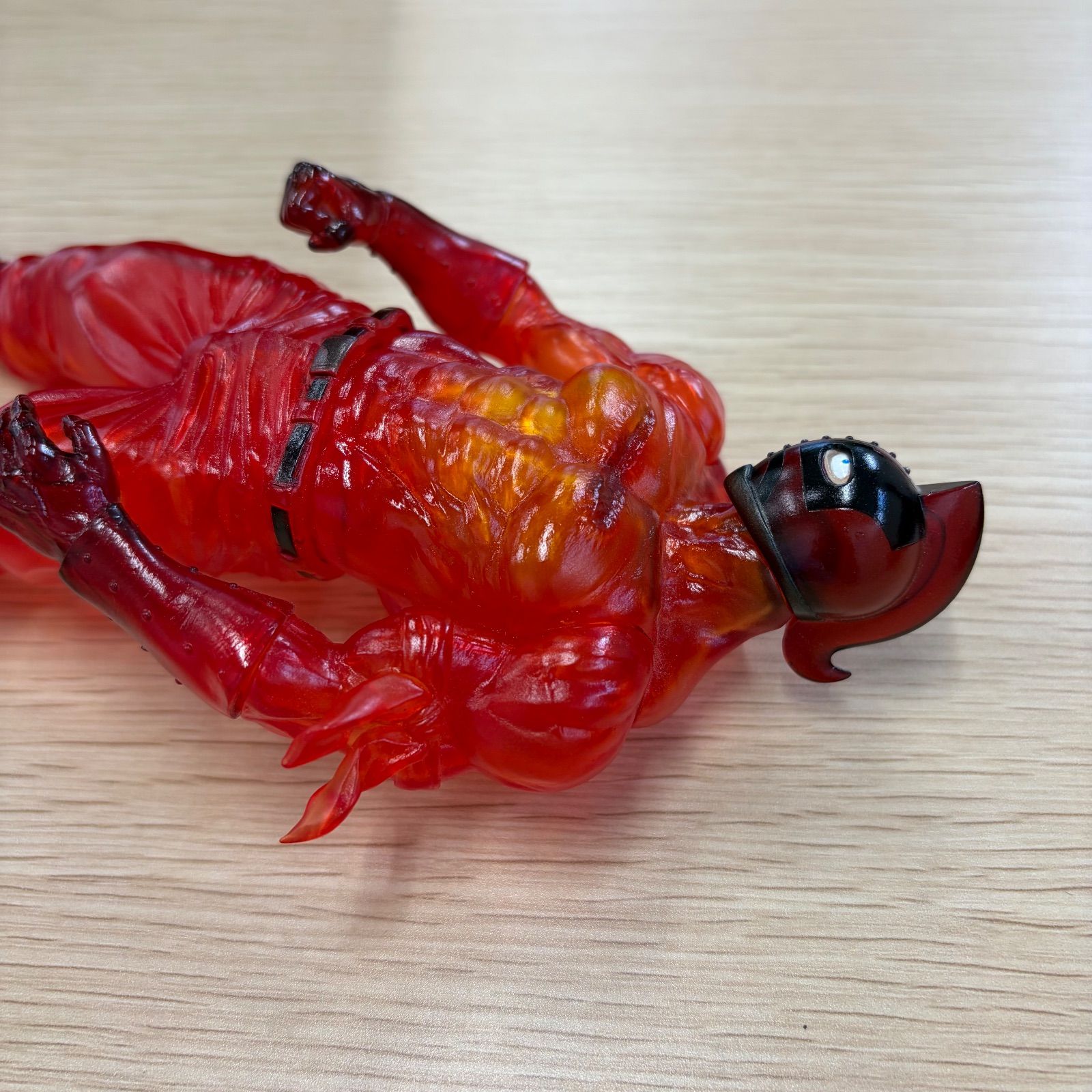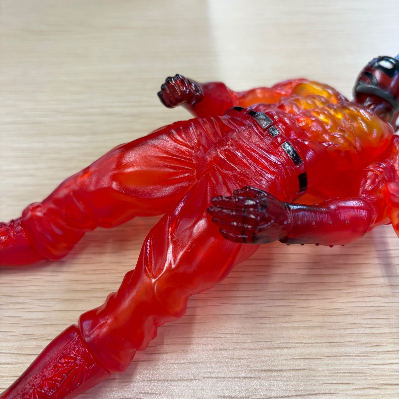 筋肉質な赤いフィギュア、自信に満ちたポーズを取るデザイン。