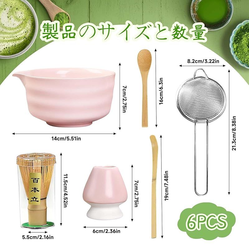 セット内容:抹茶茶碗、茶筅、茶杓を含む伝統的な茶道具6点セットです。初心者の方でも安心してご使用いただけます