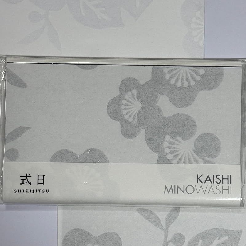 【内容】透かし和紙懐紙 式日です。式日とは、人生の門出の結婚を祝う梅の花が描かれている縁起の良い透かし模様です。 【サイズ】145×175 【枚数】20枚 【原料】針葉樹パルプ、広葉樹パルプ 【色】白 【紙質】しっかり/にじまない