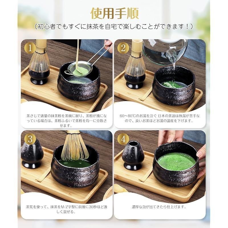 この抹茶セットは、すべて竹と高品質のセラミックで作られており、他の化学物質は一切添加されていません。茶筅は高品質の竹材を使用して手作業で作られており、長期間使用しても壊れません。茶杓は100%天然の竹で作られており、無染色無添加です。抹茶茶碗は高品質の陶器、食品級の材料を焼成して作られ、高温に強いとされています。