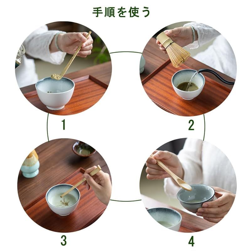 【便利な使用体験】百本立の泡攪拌機能により、手間をかけずに滑らかで繊細な抹茶を作ることができ、茶碗の設計により抹茶を攪拌するのが楽になり、茶匙の正確な測定機能により、毎回の抹茶が程よい食感と濃度を持つことがされます。