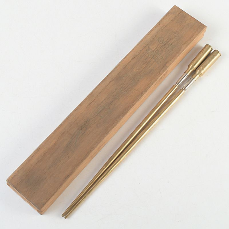 飛行学校分遺記念 古銅 弾丸型 火箸 箱付 C S188