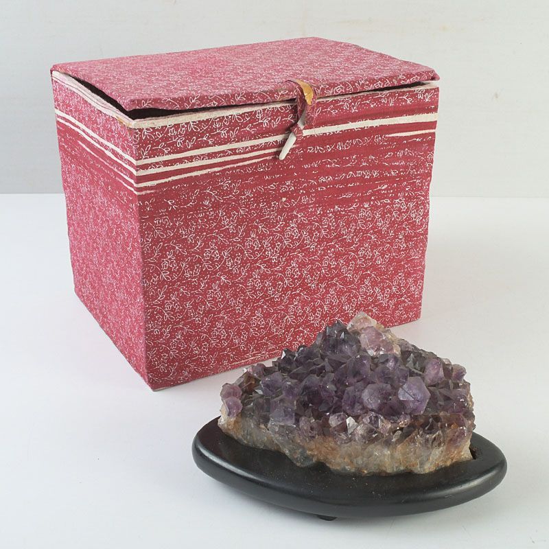 鑑賞石 天然アメジスト 置物 唐木台付 C S193