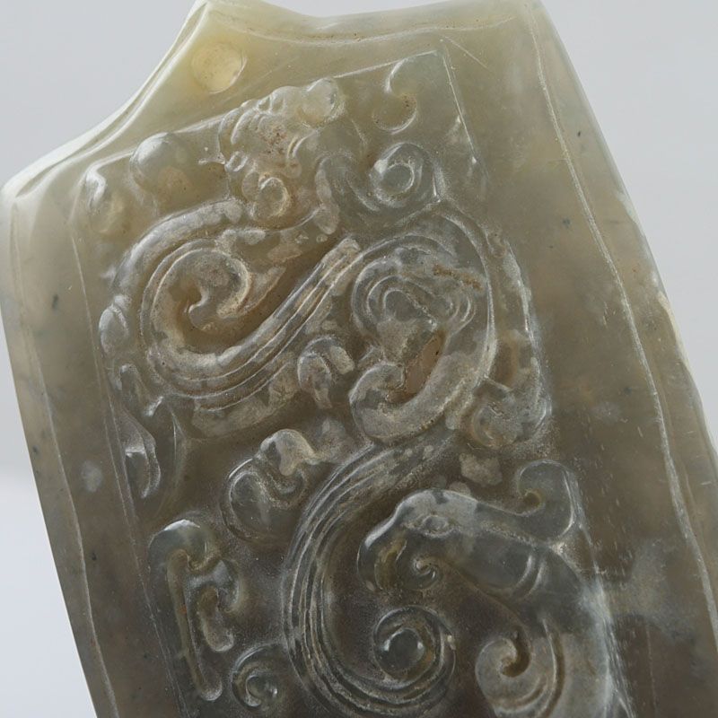 中国 玉石寿山石彫刻 神獣彫 根付 C S197