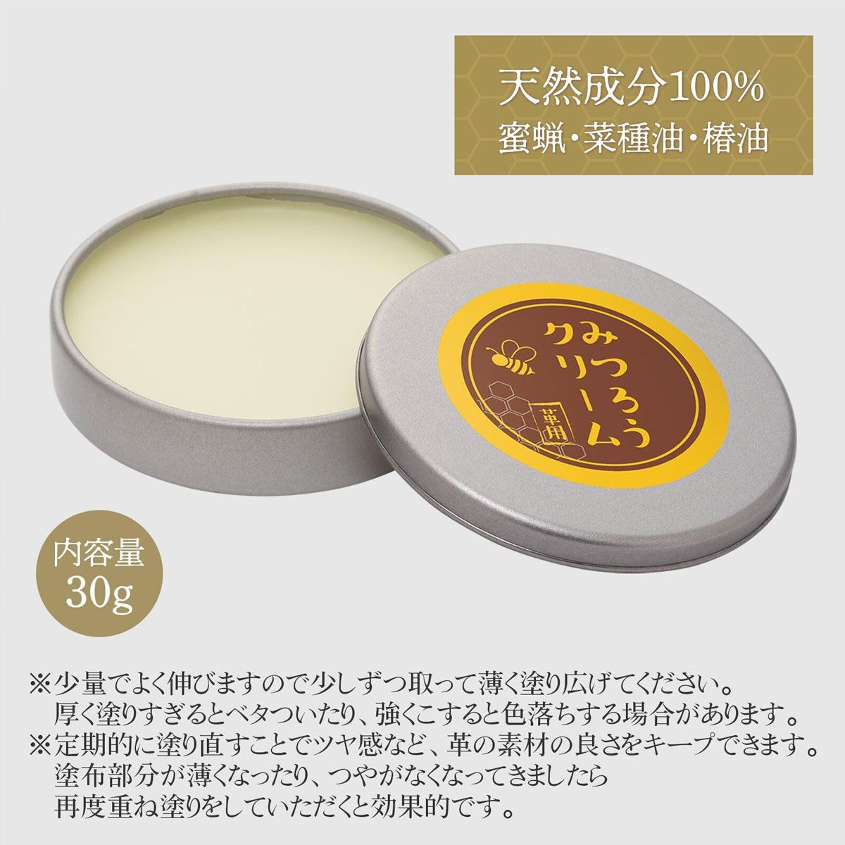 みつろうクリーム 革用 30g 革 みつろう クリーム 蜜蝋クリーム 革製品 手入れ レザー 保護 汚れ落とし 撥水 ツヤ出し 天然成分100% 菜種油 椿油 日本製