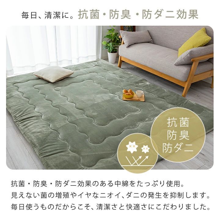 ・抗菌・防臭・防ダニ加工のある中綿を使用しているので嫌な臭いやダニの発生を抑え、清潔さを保ちます。