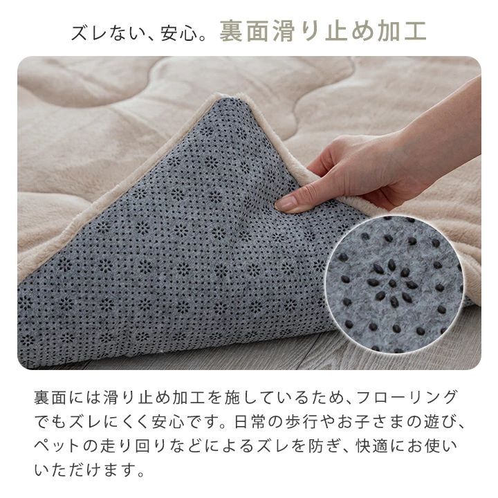 ・裏面には滑り止め加工を施してているため、フローリングでの使用でもズレにくく快適です。