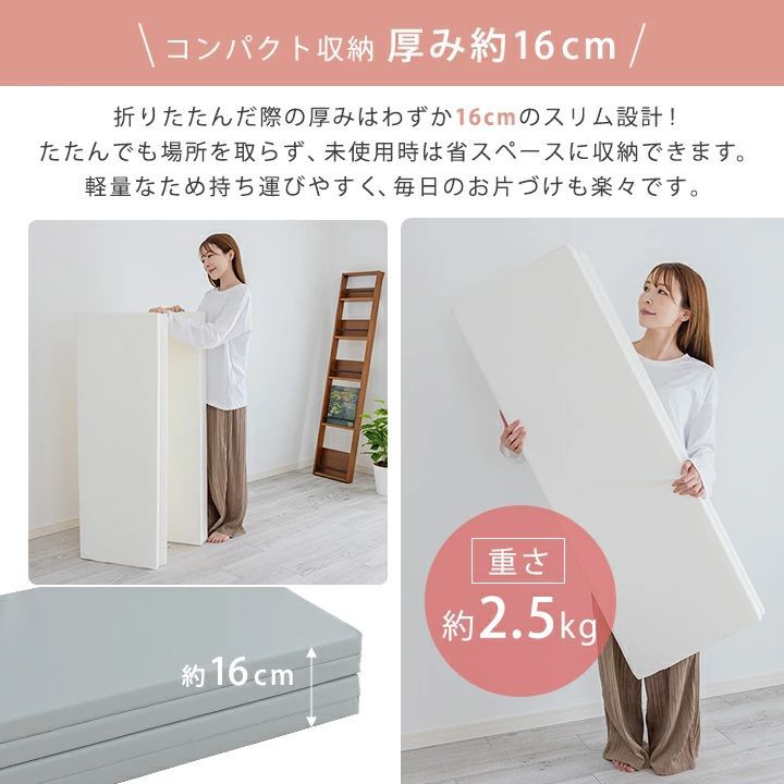 ・折りたたんでも厚さは約16cmとスリム設計なので収納時やお掃除の際にも場所を取らずノンストレスです。