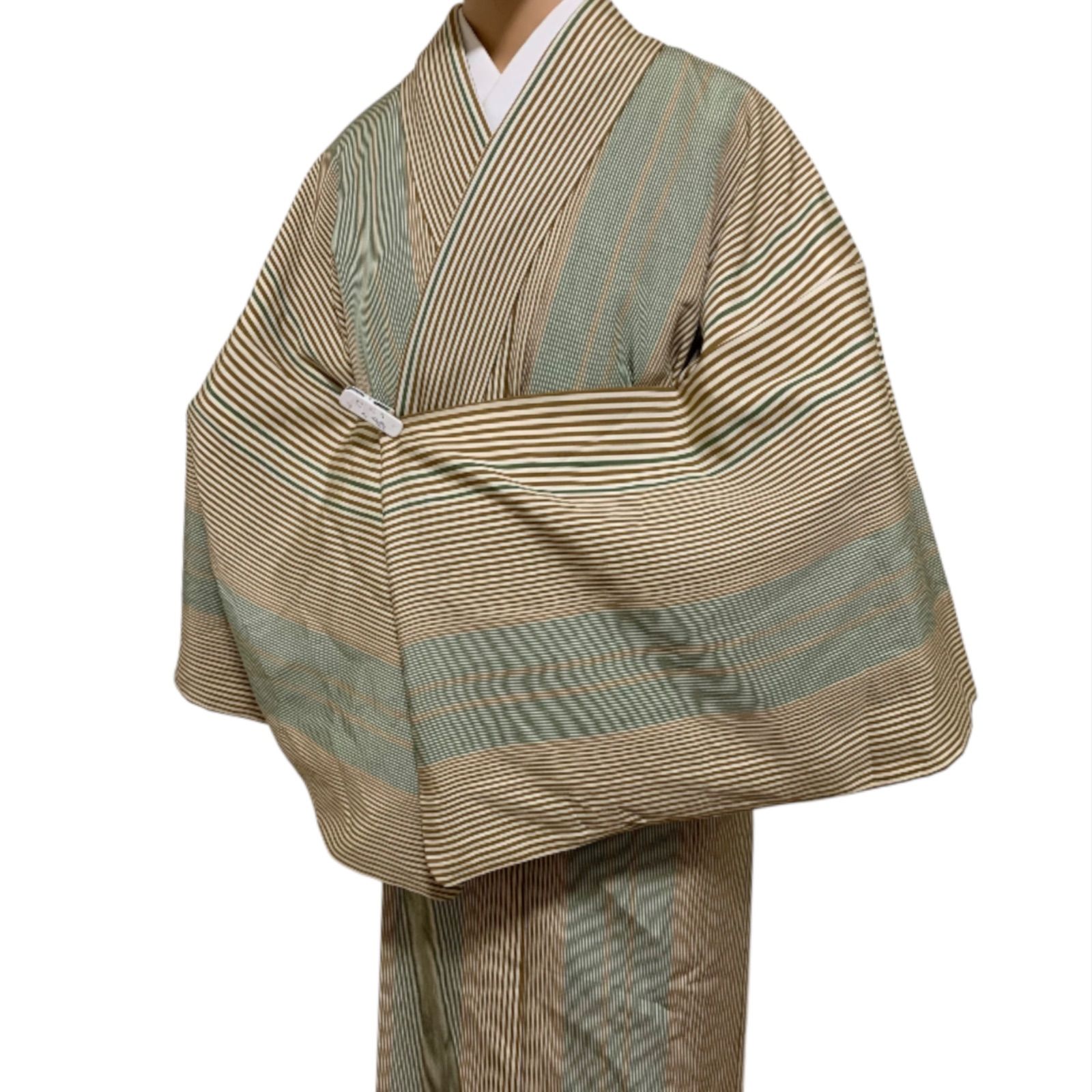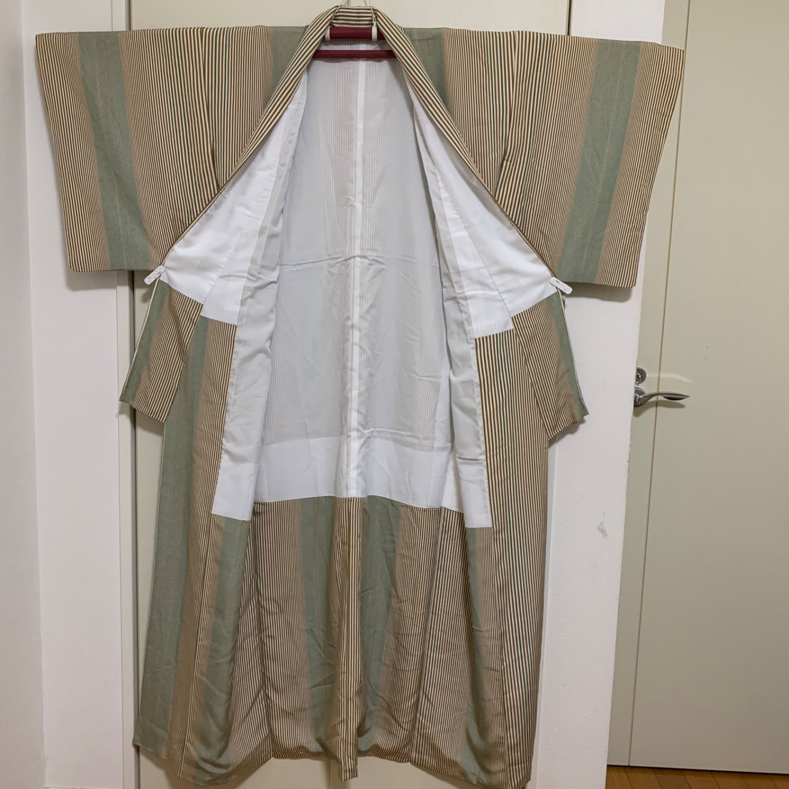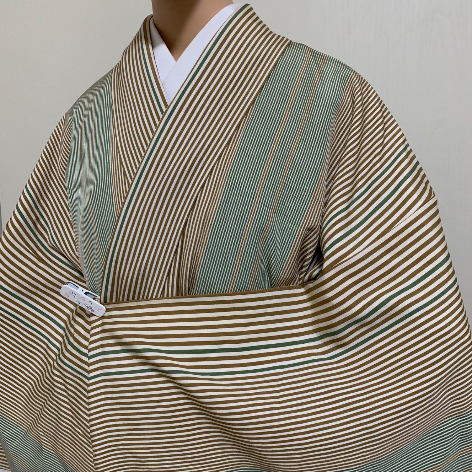 着物 小紋 袷 絹 裄65センチ 身丈(背)155センチ レディース ストライプ