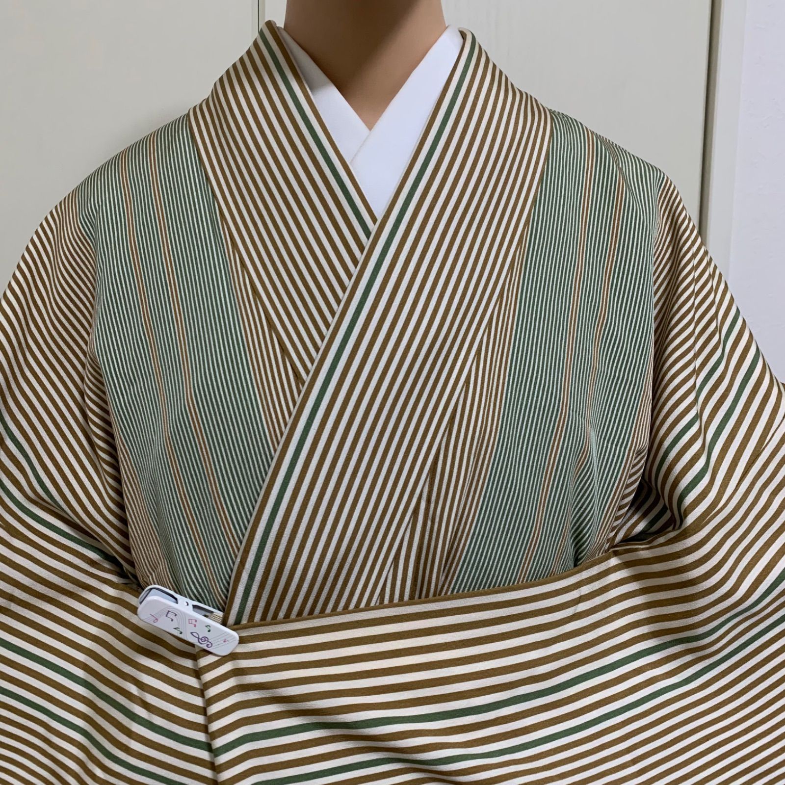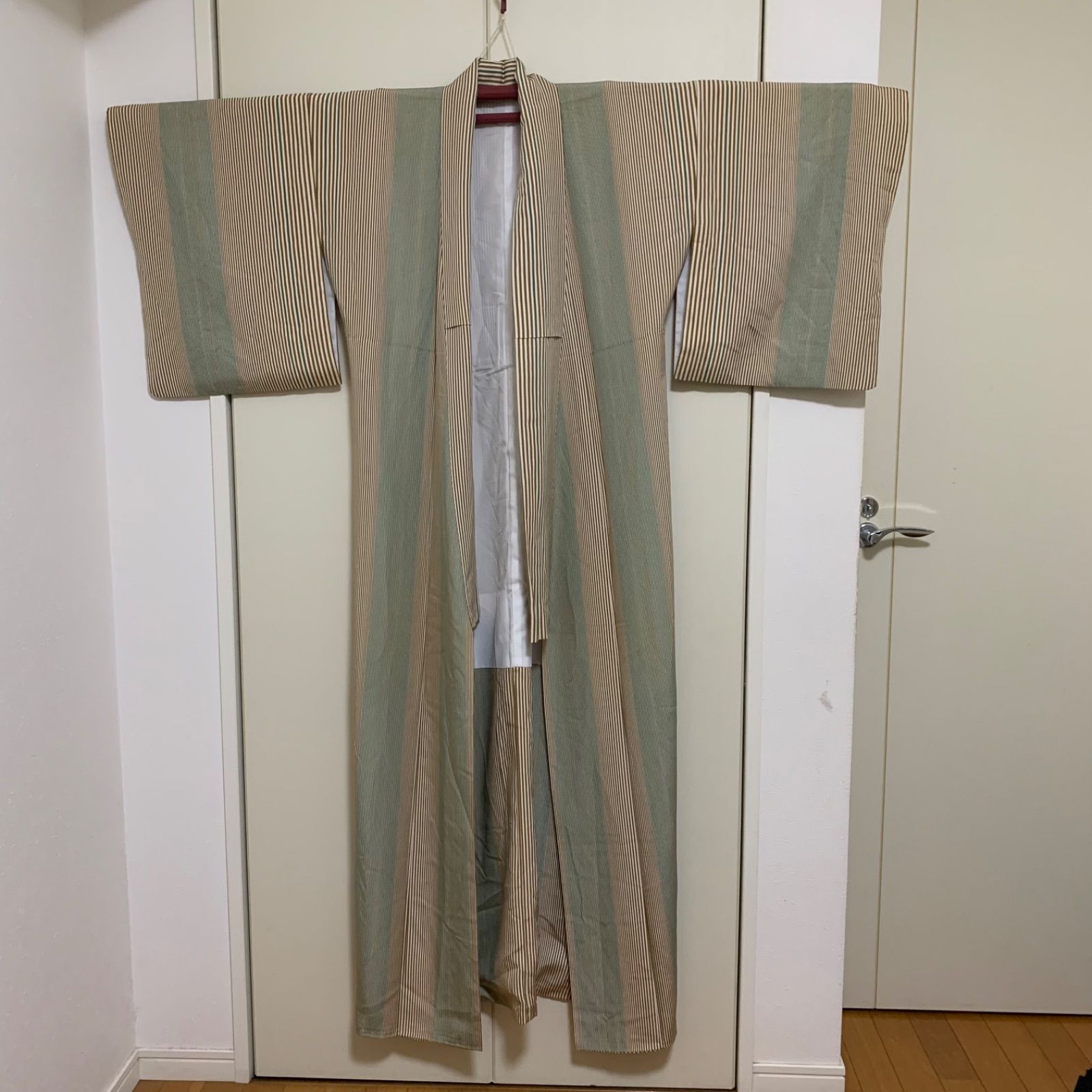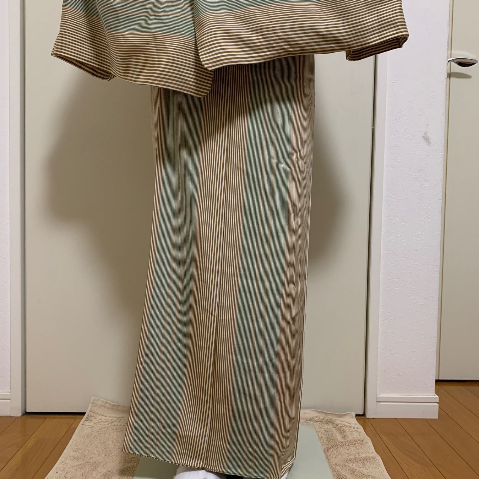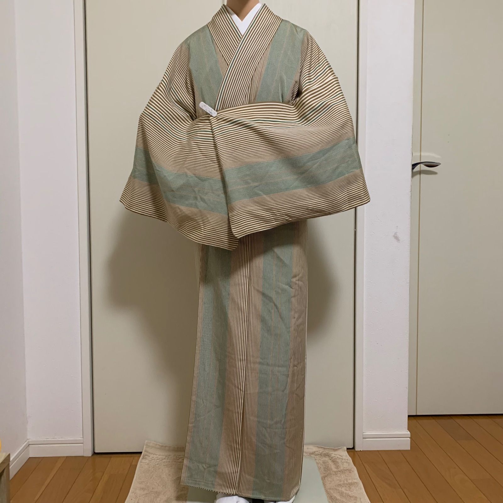 着物 小紋 袷 絹 裄65センチ 身丈(背)155センチ レディース ストライプ