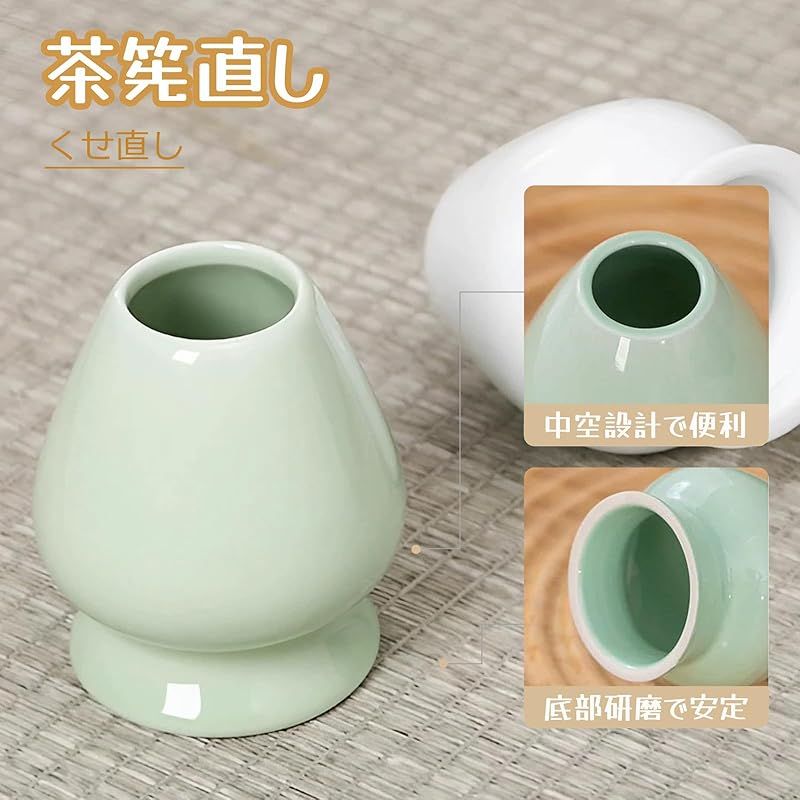 ??お手入れは、使用後に水で軽くすすぎ、茶筅立てにセットして自然乾燥。茶杓は柔らかい布で軽く拭くだけ。食洗機・洗剤は不要で、日々の茶道習慣を簡単に続けられます。