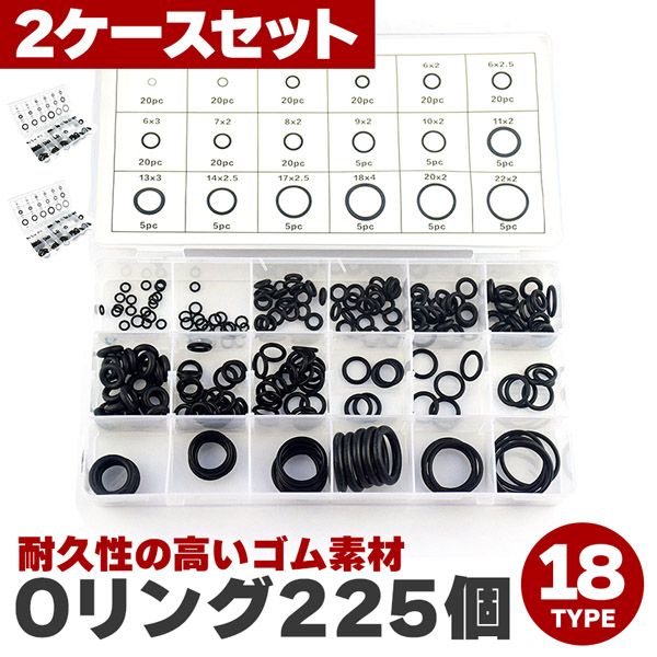 2個セット Oリング セット 225個 18サイズ 耐油 耐熱 ゴム パッキン 修理 補修 メンテナンス 車 バイク 水道 蛇口 家庭用 工具 ゴムリング シーリング ワッシャー 漏れ防止 オーリング ゴムパッキン 水管設備 蛇口 電気器具 ベアリング 自動車
