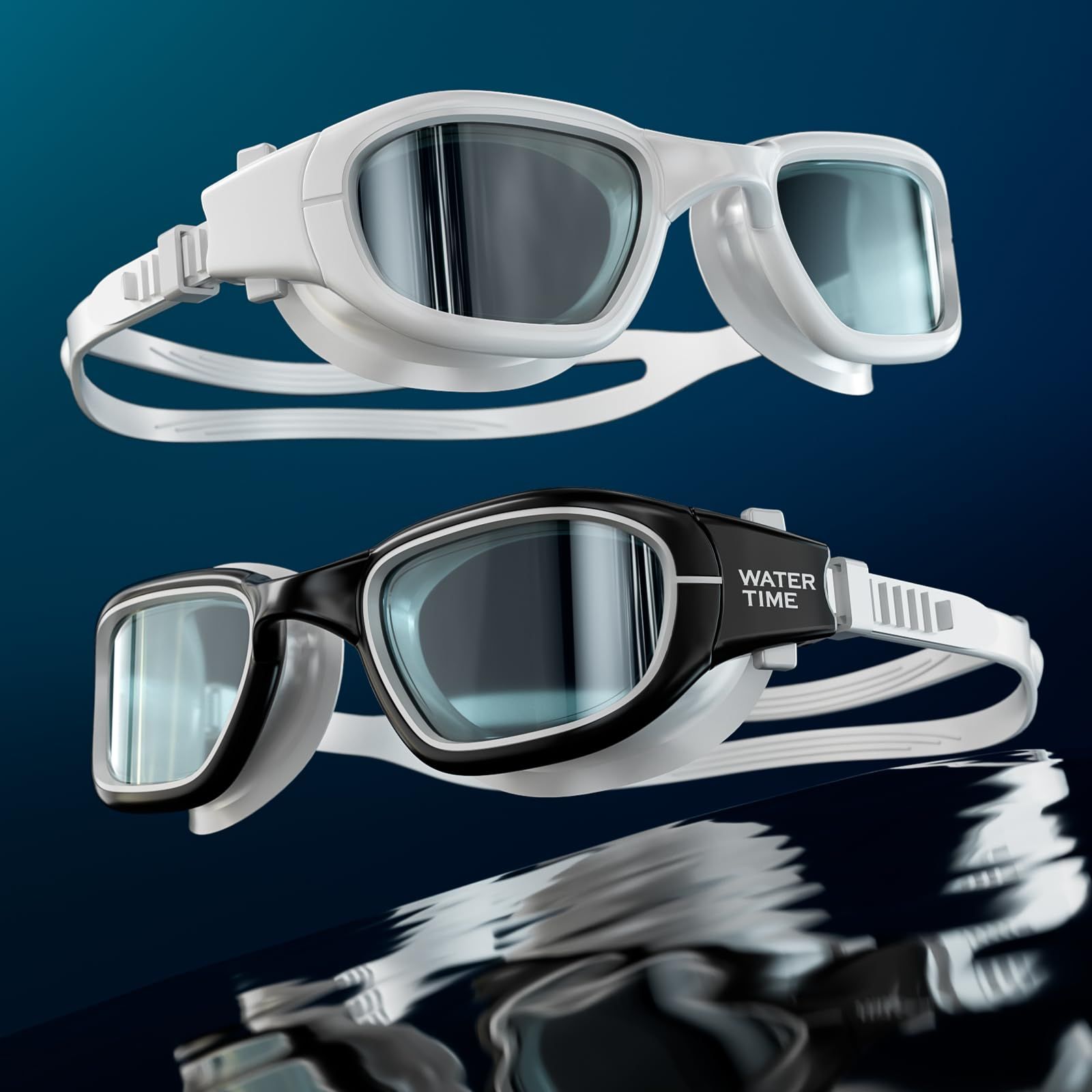 WATERTIME水泳ゴーグル男女兼用UV防止防水超柔軟シリコンマット室内・屋外兼用ビッグフレーム快適フィット大人用ゴーグル