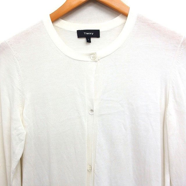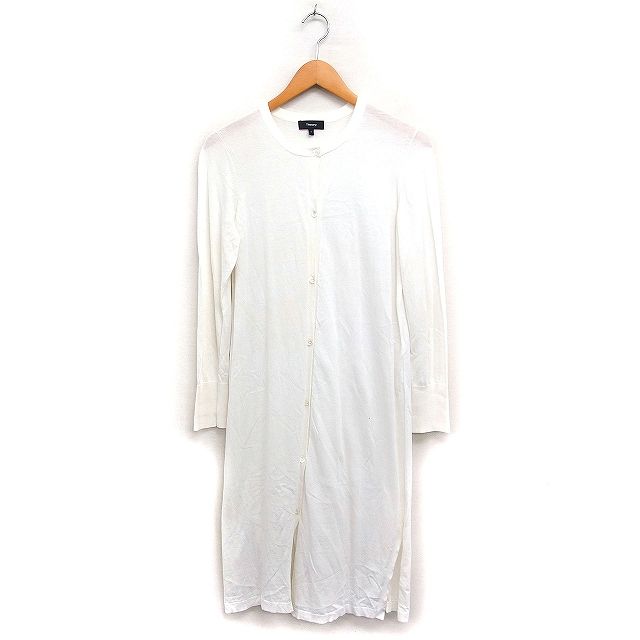 【商品名】セオリー Theory ロング カーディガン 丸首 無地 コットン ニット S ホワイト 白 /FT10
