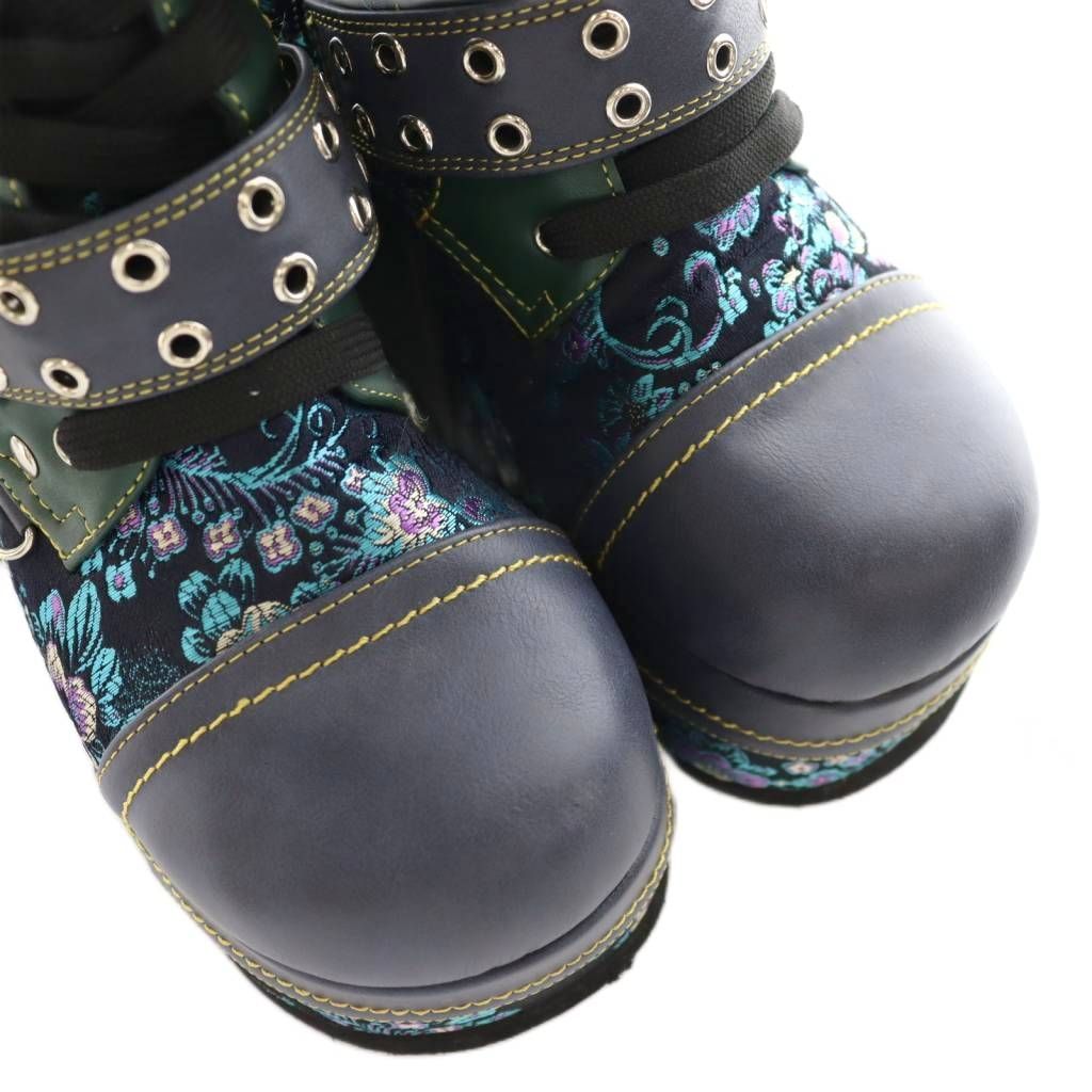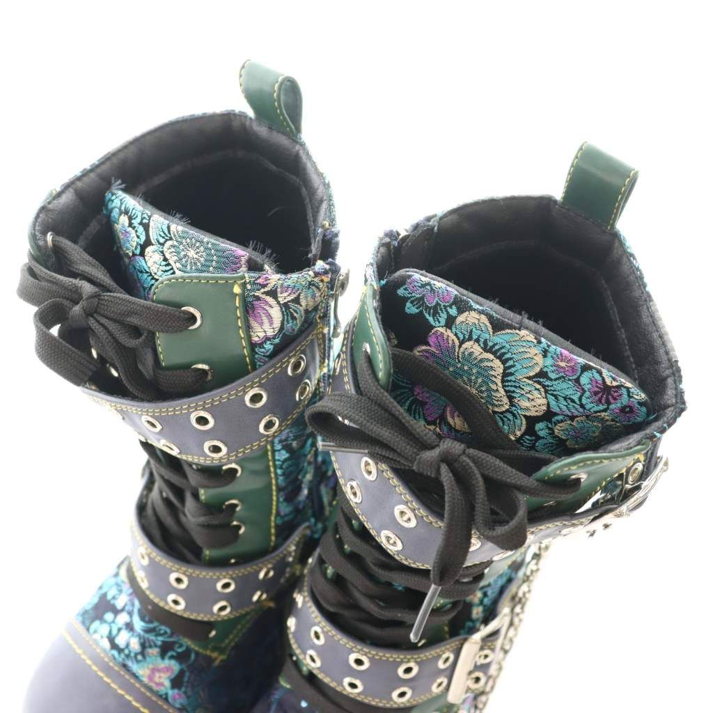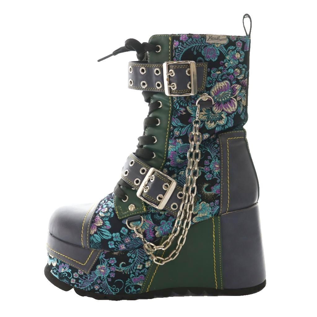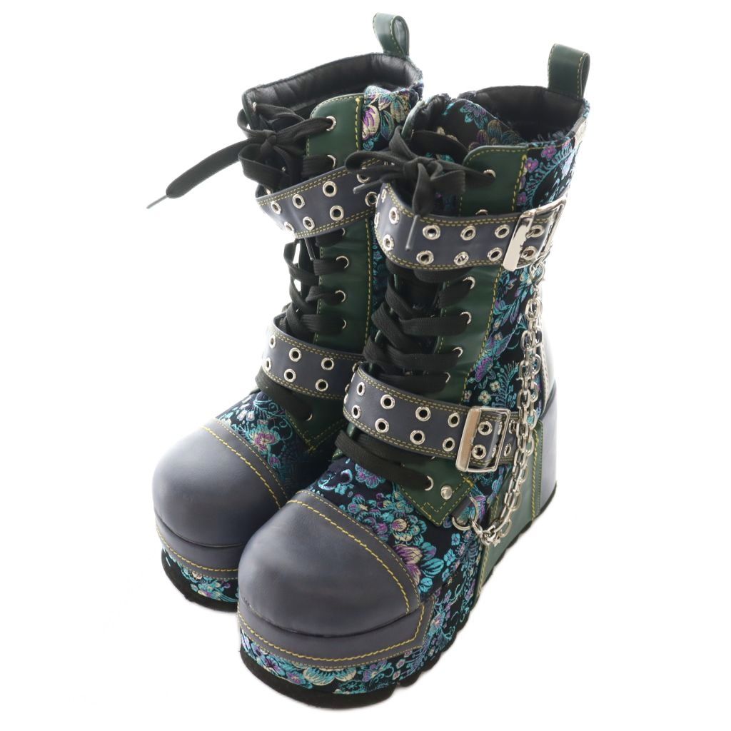 【商品名】ヨースケ YOSUKE 厚底ダブルモンクハトメベルディットブーツ ミドル マルチカラー 緑 グリーン 黒 ブラック /SS ■OS