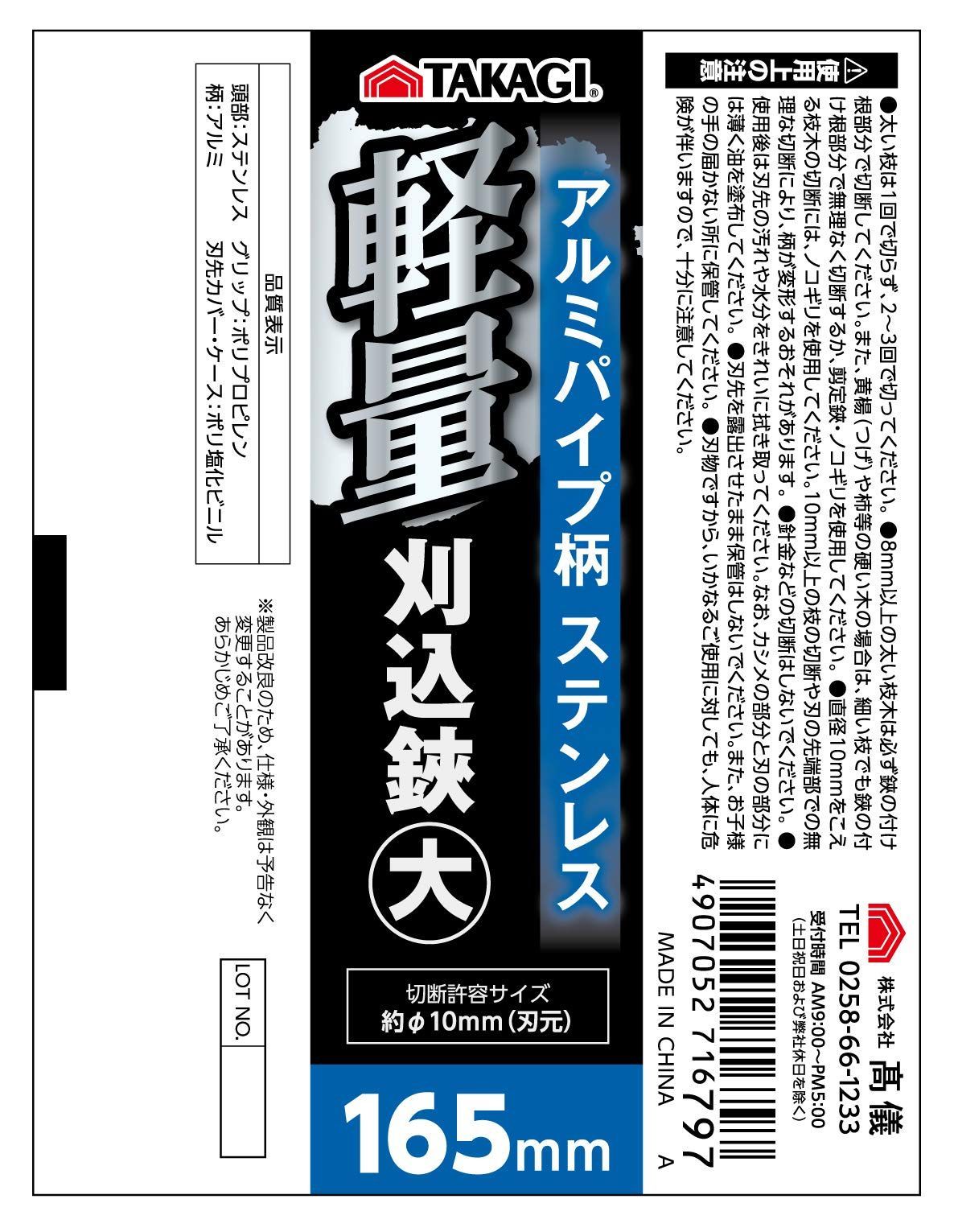 髙儀(Takagi) 高儀 TAKAGI アルミパイプ柄 ステンレス 軽量刈込鋏 大 165mm