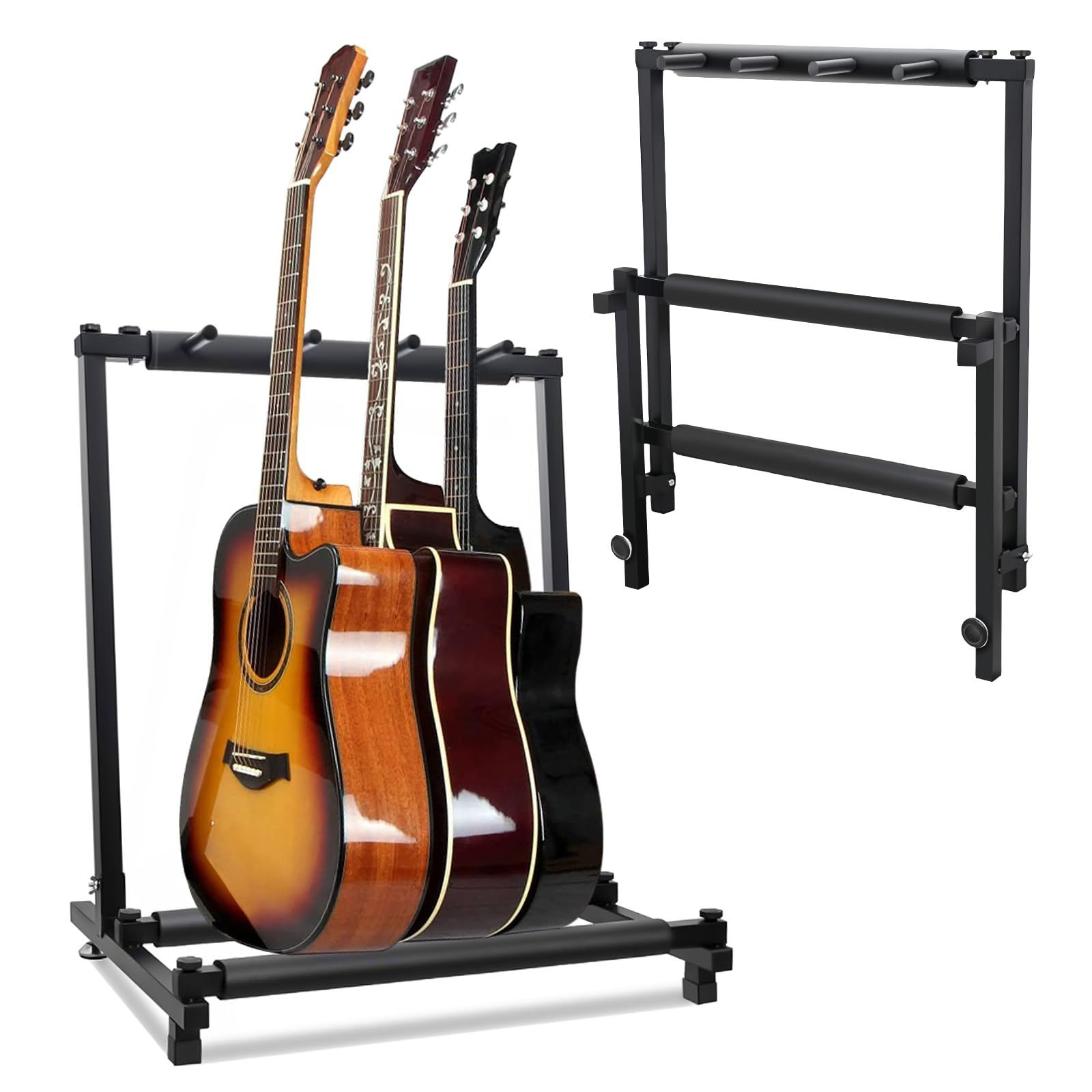 KAKETE ギタースタンド 三本収納 安定 折りたたみ式 転倒防止用ゴム付属 楽器本体に傷が付くのを防ぎます安定耐久 収納しやすい ブラケット (アコギ/ウクレレ/クラシック/エレキ/ベース/管楽器 対応スタンド) 最新型 鉄製 (3本収納)