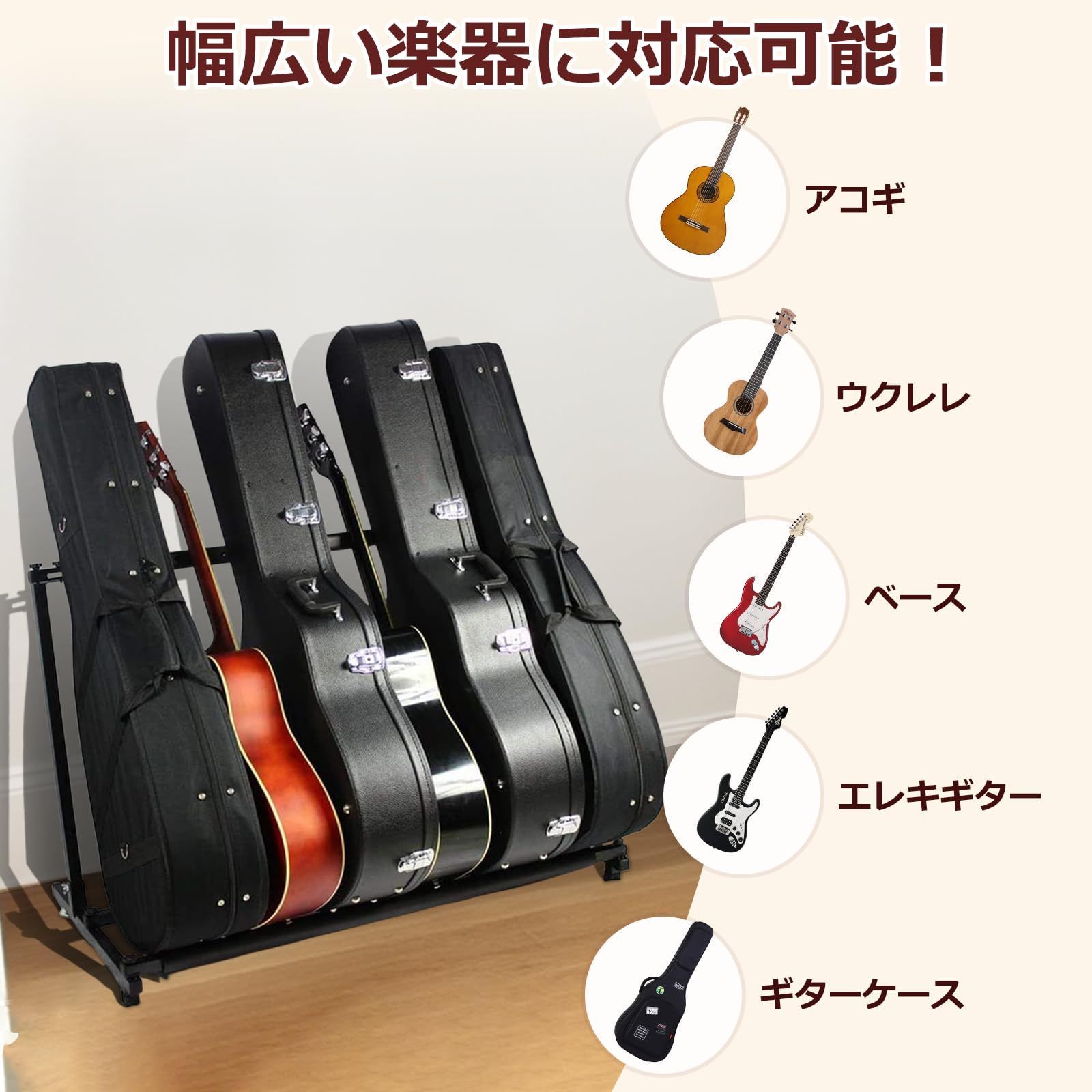 【転倒防止楽器保護】楽器は転倒なしで床にしっかりと立つことができます。コンクリート、カーペット、リノリウム、および他の場所で使用することも安全です。立て組んだスタンドは安定感があり、倒れる心配はありません。ネックの反りやボディを破損させるトラブルを最小限に抑えられます。楽器と接触する部分は厚手のラバーで覆われているので、大事な楽器を守っていただけます。