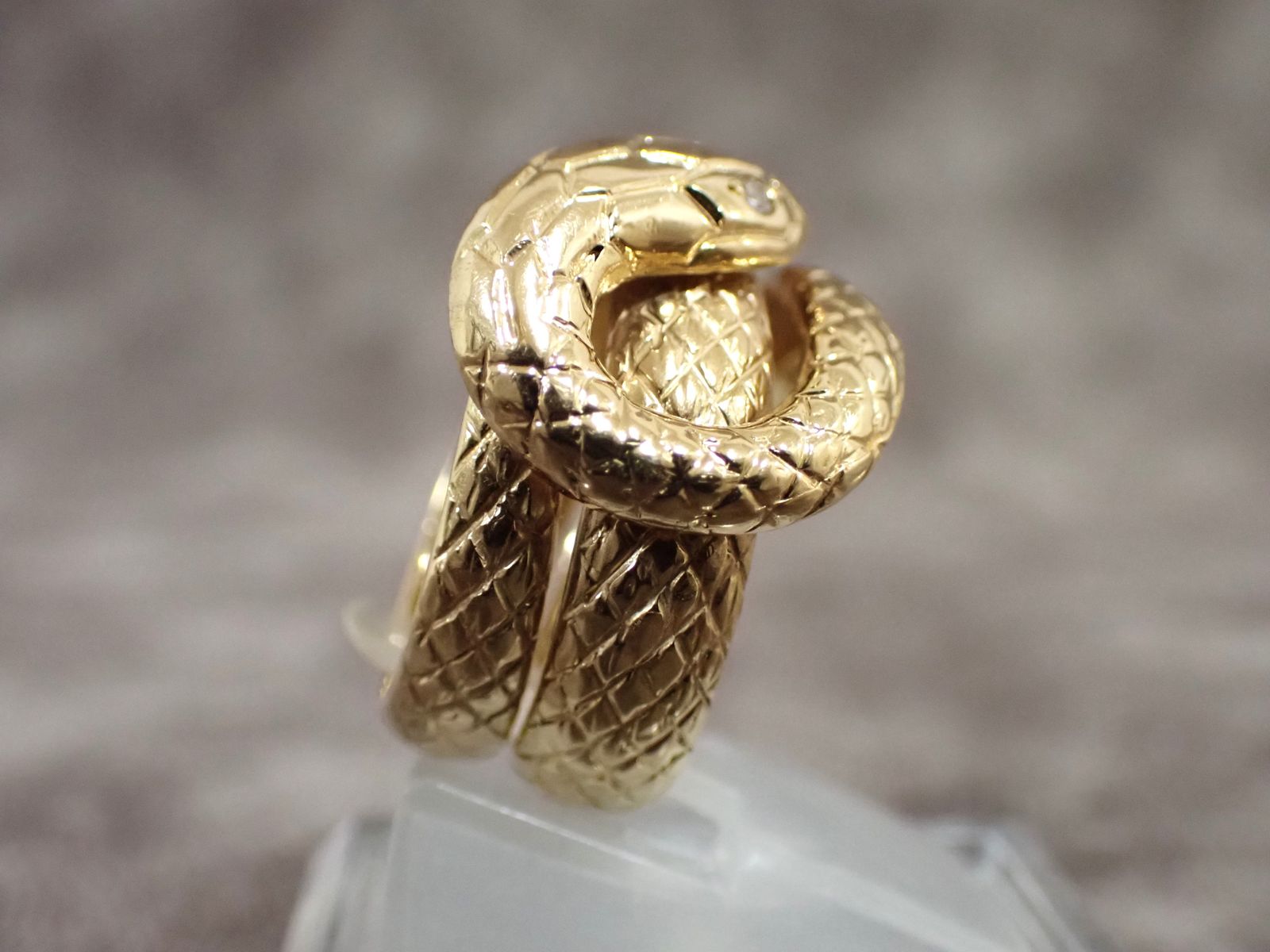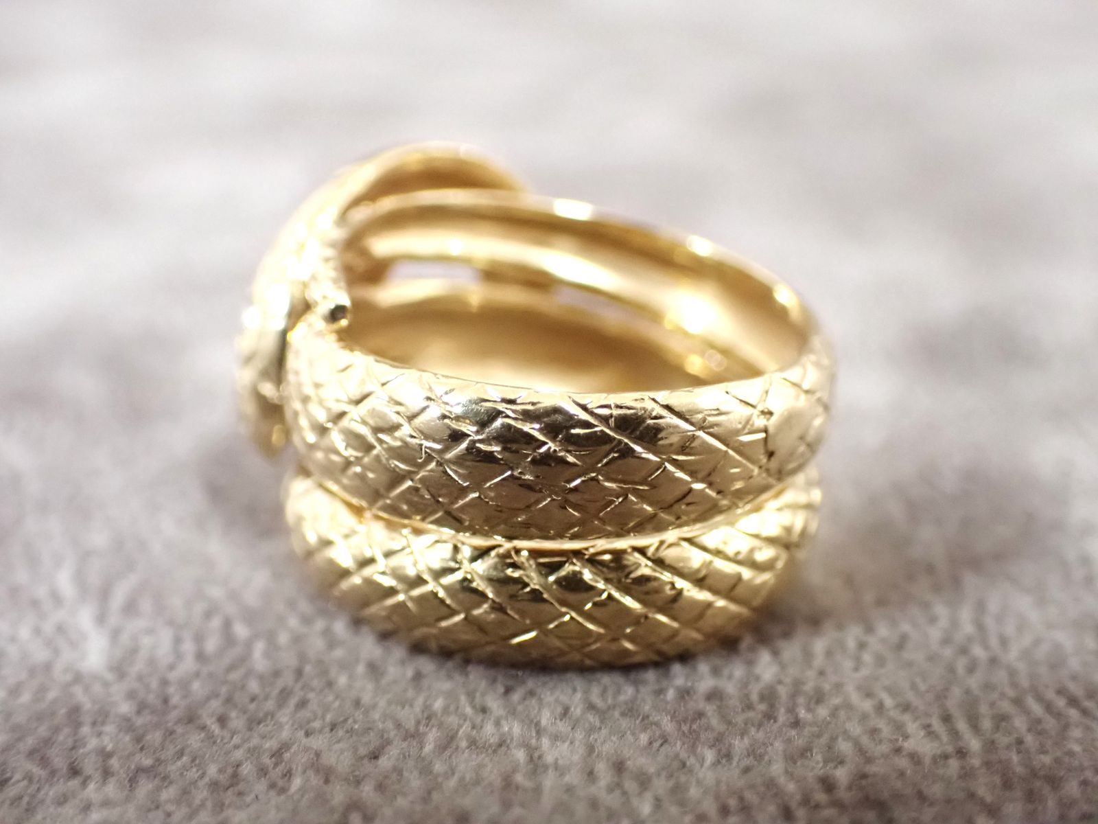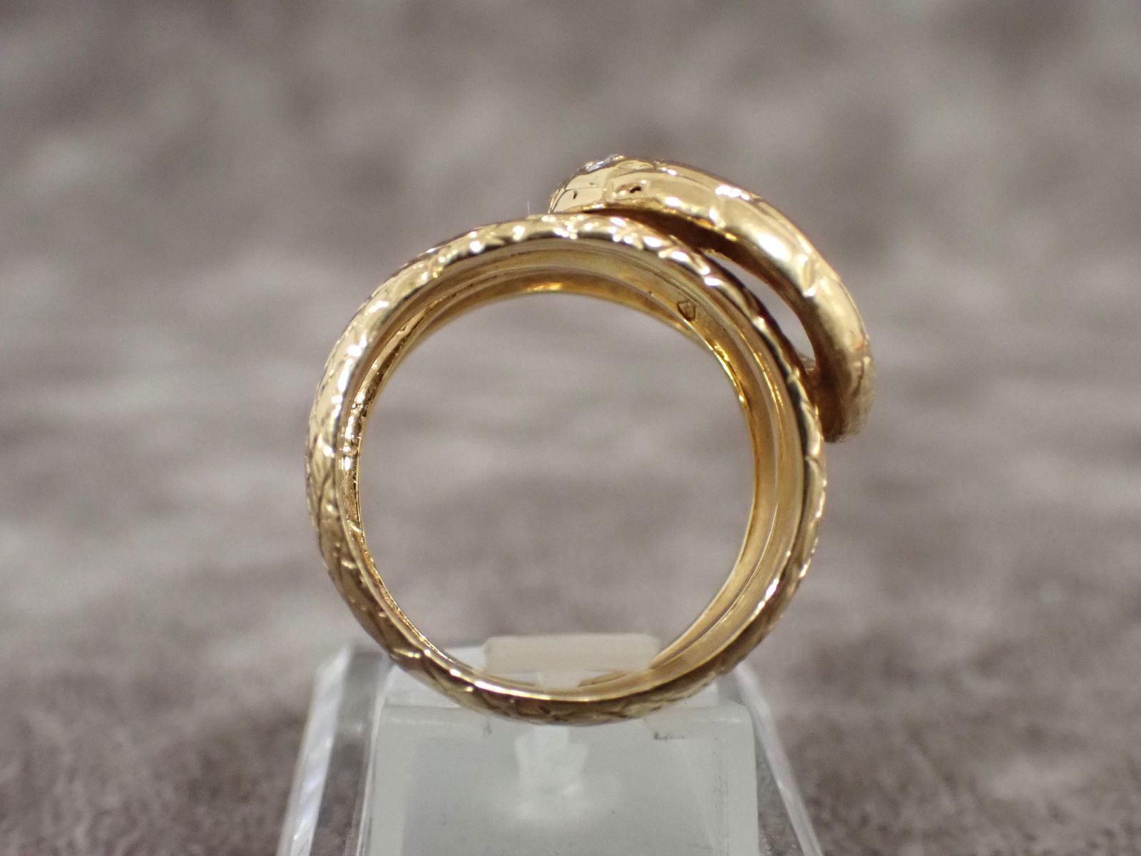 本商品はブランドは不明ですが、18金が使用された蛇デザインのリングでございます。