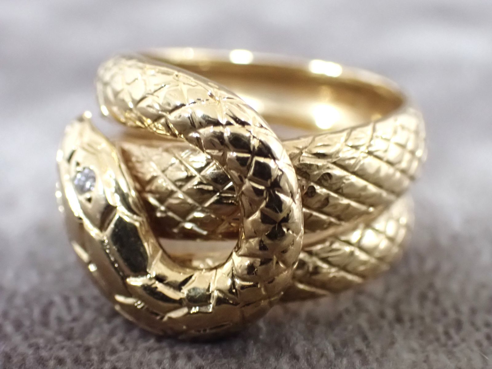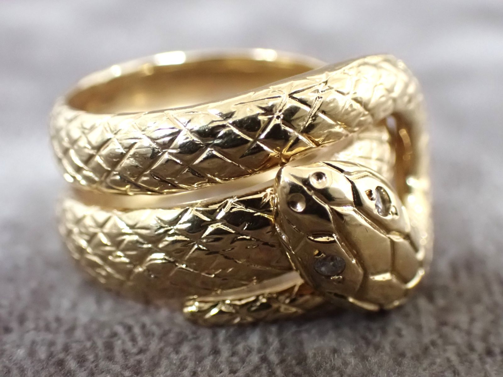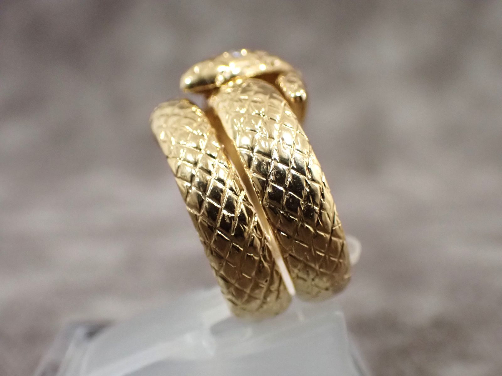 本商品はブランドは不明ですが、18金が使用された蛇デザインのリングでございます。