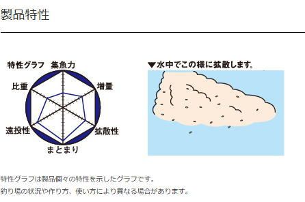 横方向への拡散性と遠投力に優れた操作性の高い配合エサ。沈下速度や集魚力など、グレ釣りに求められる基本性能のバランスがきわめてよく、波止のグレから離島の尾長までオールマイティに対応できます。