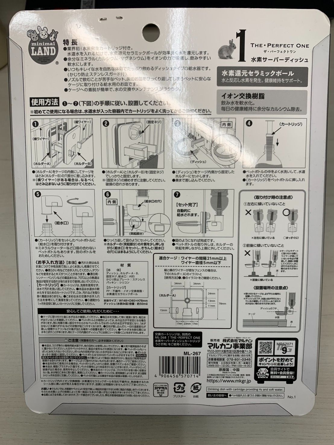・水素発生剤とイオン交換樹脂カートリッジ付の、うさぎが飲みやすいお皿型の給水器です。