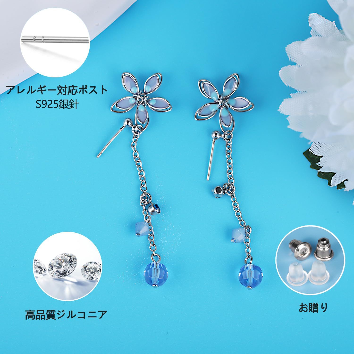 ピアス イヤリング レディース 人気 可愛い 花 揺れる 和風 ジルコニア 金属アレルギー対応 18K ピアス アクセサリー 誕生日 プレゼント 女性 ジュエリー