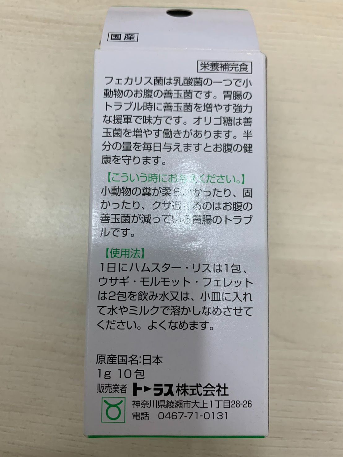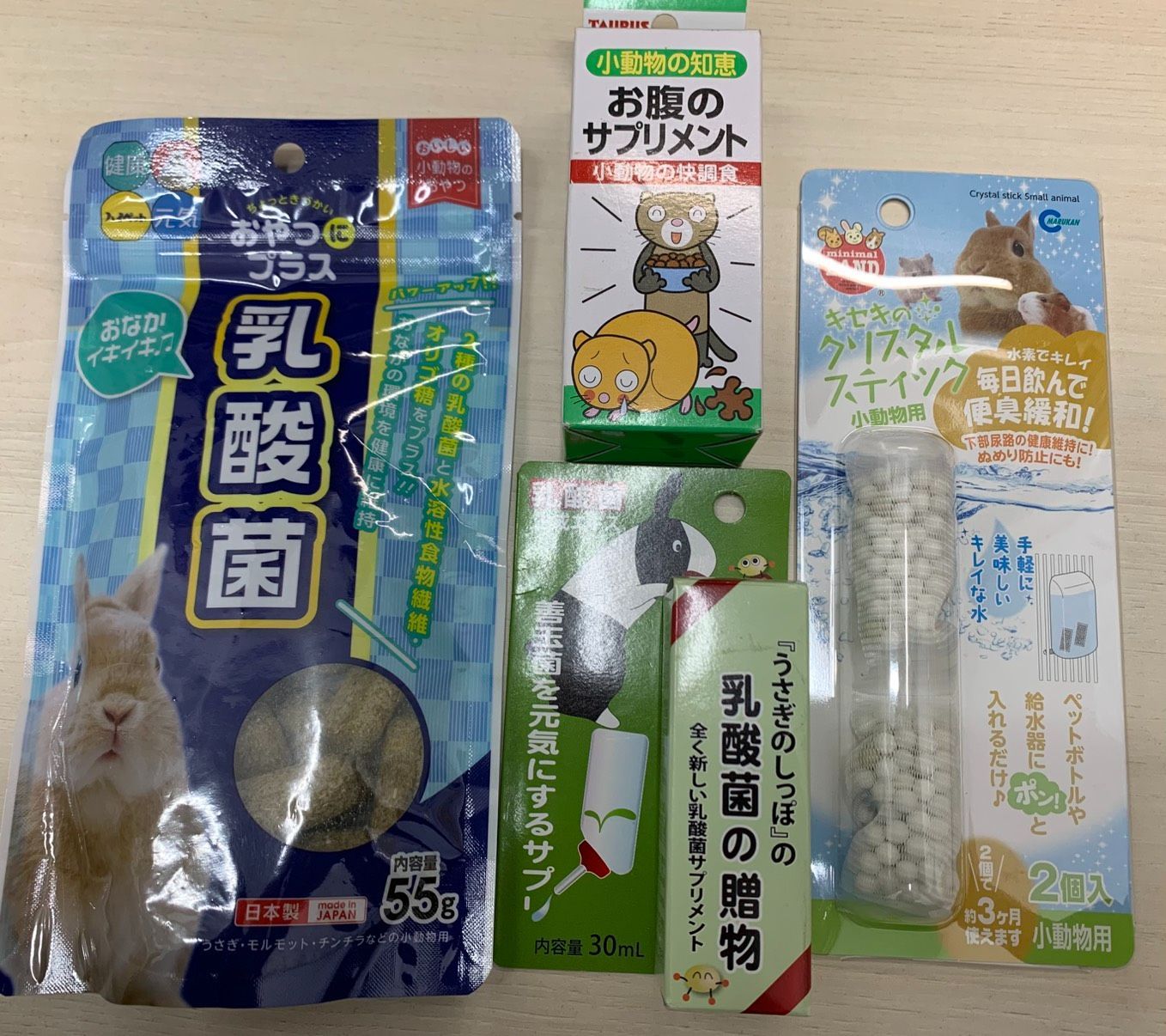 小動物のおやつ乳酸菌・乳酸菌生成エキス・お腹のサプリメント・クリスタルスティックの4点セットです。