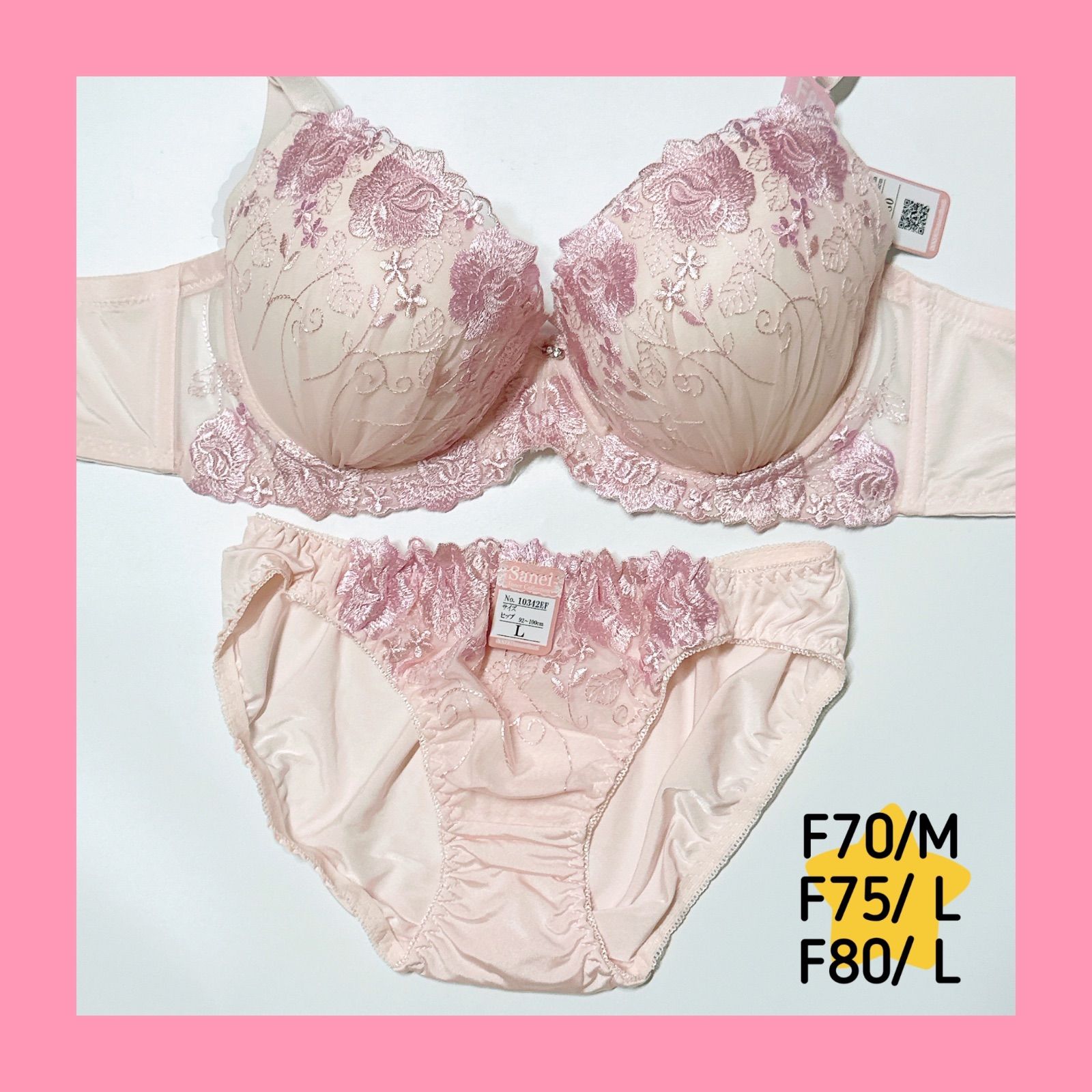 フェミニンスイートローズ育乳脇高ブラジャー&フルバックショーツ