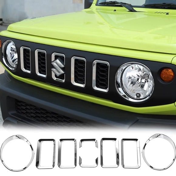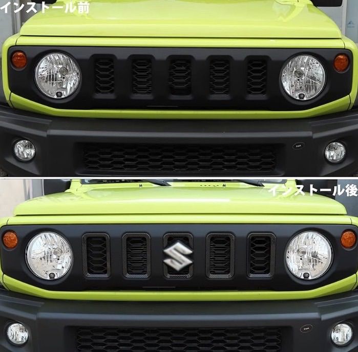 【カーボンブラック】ヘッドランプカバー グリルカバー スズキ ジムニー 外装 シエラ JB64 JB74 2019+ 車種専用 グリルカバー グリルインサート ヘッドライト グリルガード 7点セット 外装 7ps