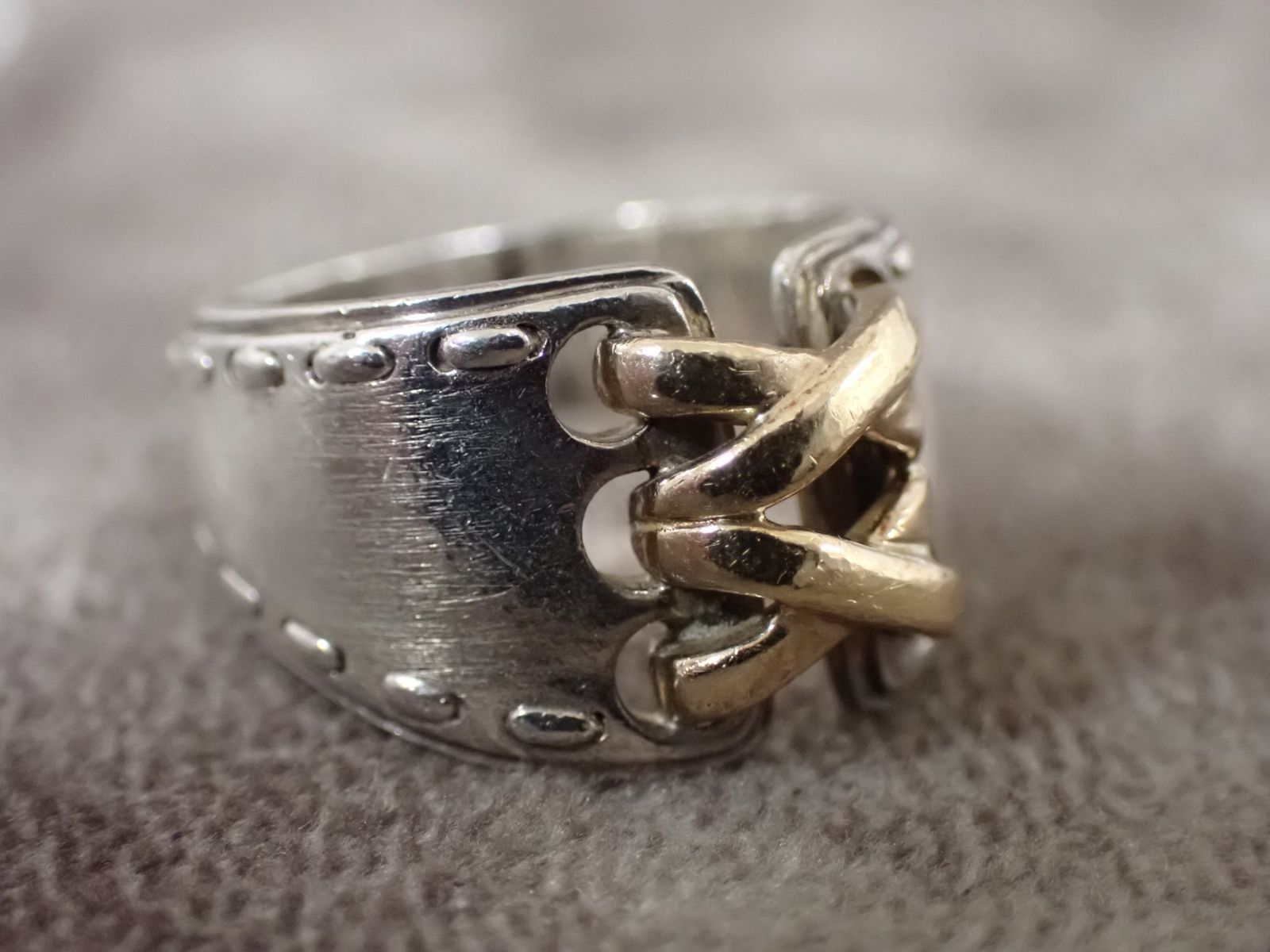 本商品はコンビデザインの希少なコルセットリングでございます。